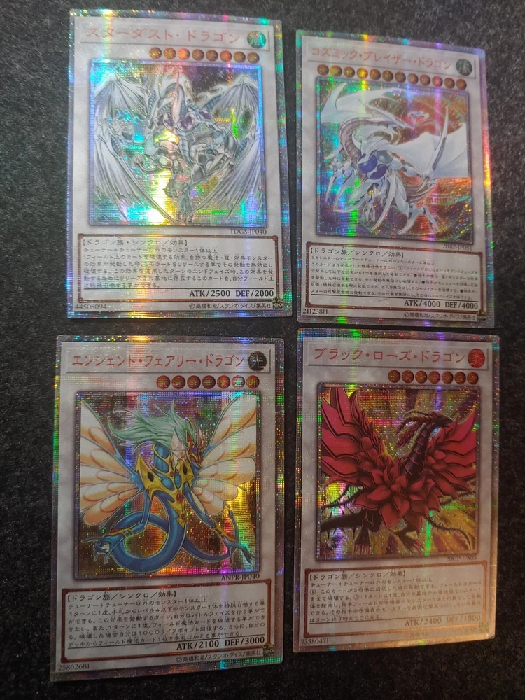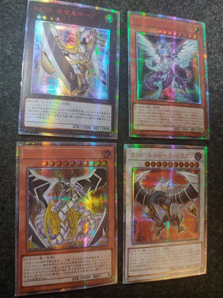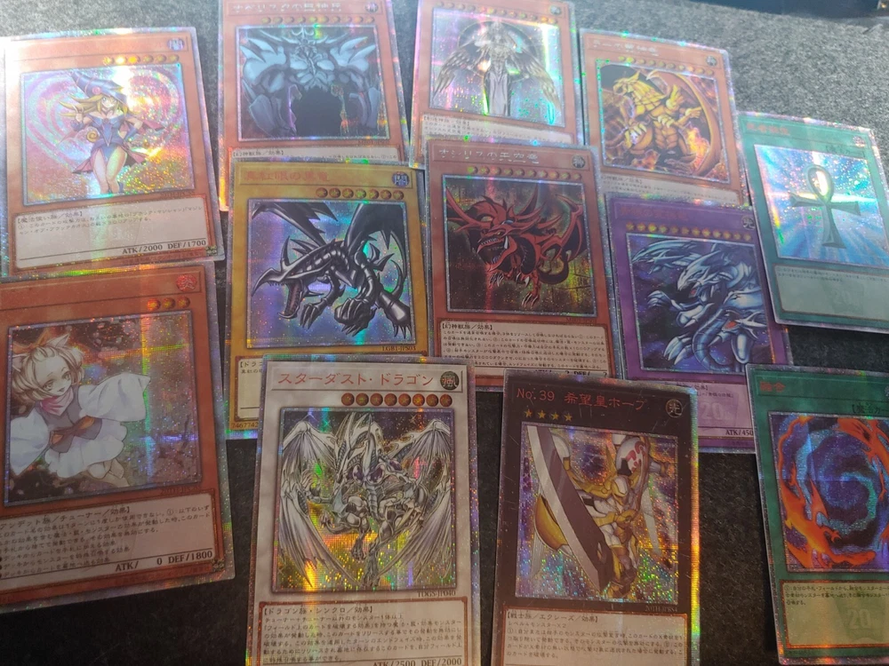 57 Starlight Rare Yu-Gi-Oh cards. Near mint. The cards included are in the photos. These cards are in Japanese and are fan-made. They can't be used in official tournaments. They are for collection purposes only. Obolisk the Tormentor Slifer the Sky Dragon The Winged Dragon of Ra The Creator of Light Blue Eyes Ultimate Dragon Red Eyes Black Dragon Dark Magician Girl Stardust Dragon Number 39 Utopia Ash Blossom & Joyous Spring Infinate Impermanance Harpies Feather Duster Monster Reborn Max "C" Sky Striker Link Monsters And More! Free Shipping Please message us with any questions. Thank you.
