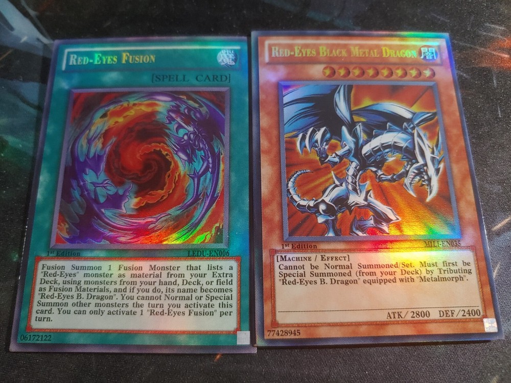 Red Eyes Black Metal Dragon & Fusion Set - Ultra Rare You get all the cards in the photos. These cards are fan-made original cards. They can't be used in official tournaments. For collection purposes and casual play only. Free Shipping via standard envelope. No tracking. Please message us with any questions. Thank you