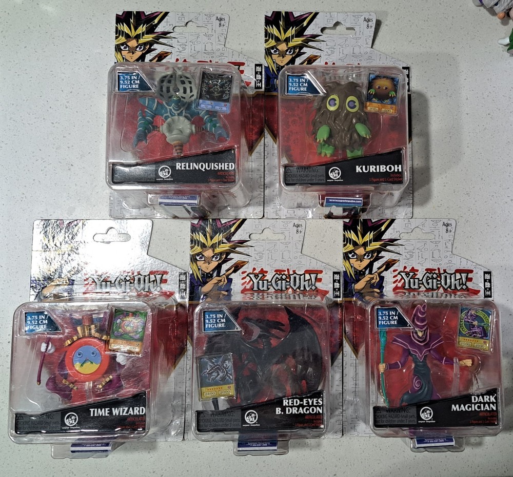 You are buying the 5 new yugioh figures shown here. Brand new never been opened. Kuribo packaging has a crease. See photos for more info.