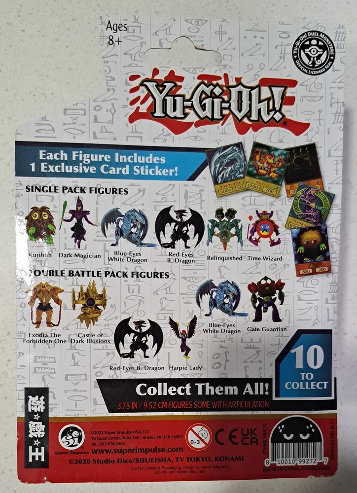 | Character | Blue Eyes White Dragon, Red Eyes Black Dragon, Time Wizard, Dark Magician, Relinquished, Kuriboh |