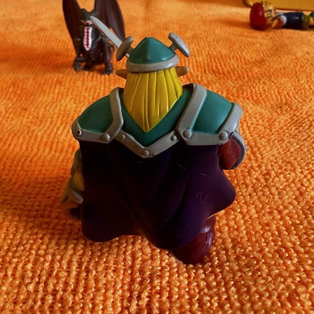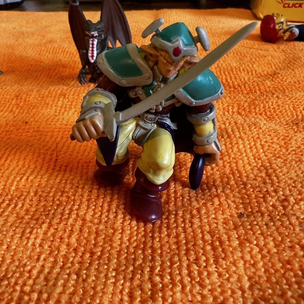 This is a vintage Yu-Gi-Oh Flame Swordsman mini figure released by Mattel in 1996. The figure is made of PVC and measures between 2-3 inches in size. It is a part of the Yu-Gi-Oh franchise and TV show, designed after the character Flame Swordsman from the series. This collectible item does not come with packaging and is recommended for children aged 4 and up, making it a nostalgic piece from the 1990s era of Yu-Gi-Oh merchandise.