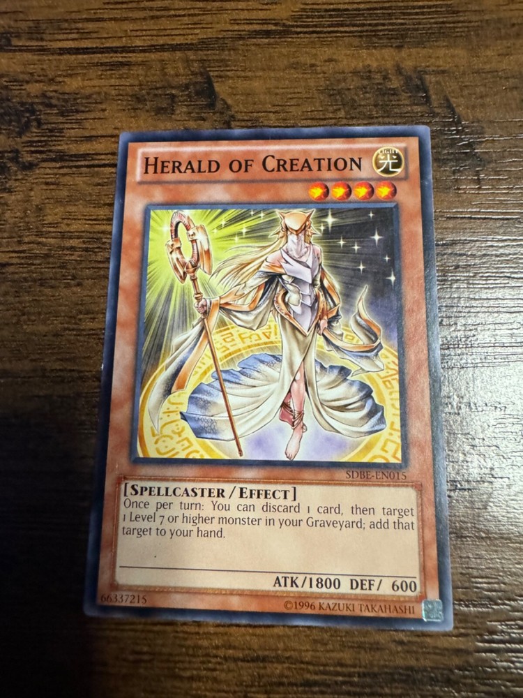 This rare and highly sought-after Yu-Gi-Oh! card features the powerful Herald of Creation, with 1800 Attack/Power and 600 Defense/Toughness. It is a Common/Short Print card from the Saga of Blue-Eyes White Dragon set, with English language and card number SDBE-EN015. This Effect card is manufactured by Konami and has Unlimited features, making it a must-have for any serious collector or Yu-Gi-Oh! TCG player. Don't miss your chance to add this impressive card to your collection!