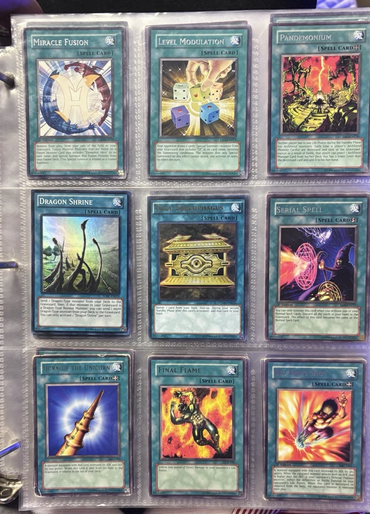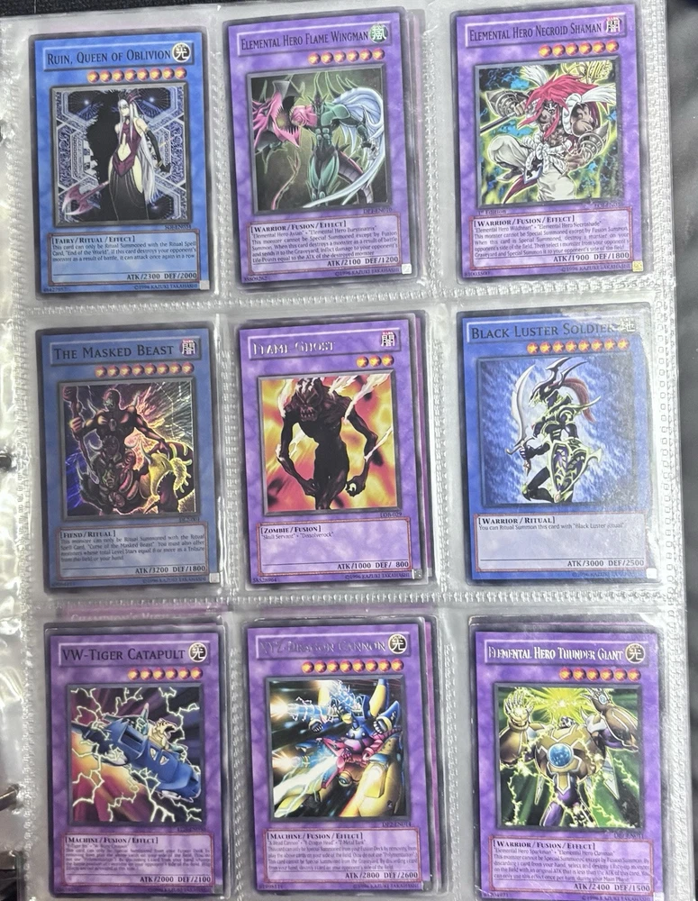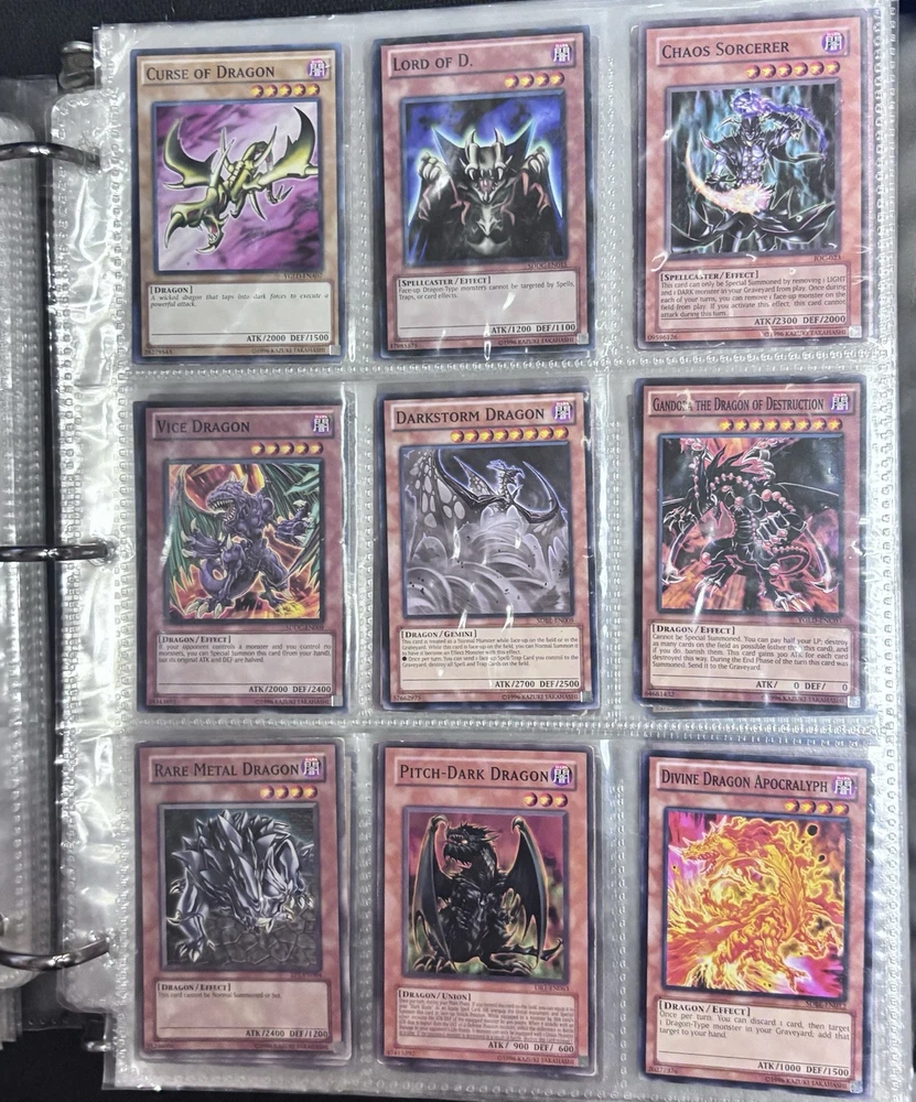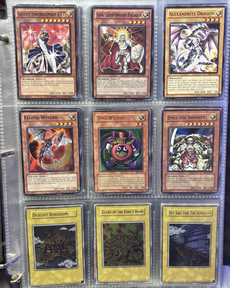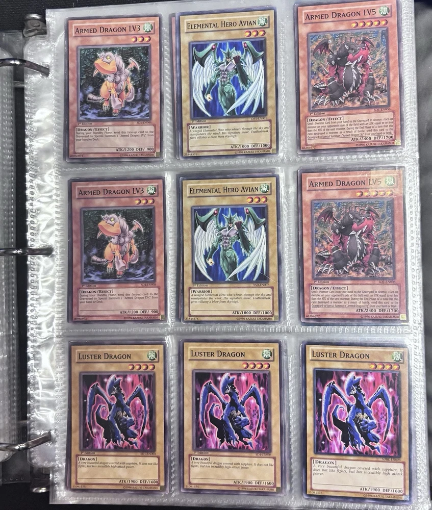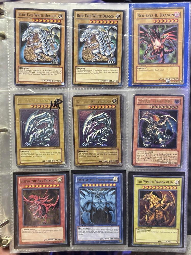 blue eyes white dragon, dark magician, red eyes b dragon, relinquished, black luster soldier, left leg of the forbidden one, kinetic soldier, slate warrior, fairy king truesdale |