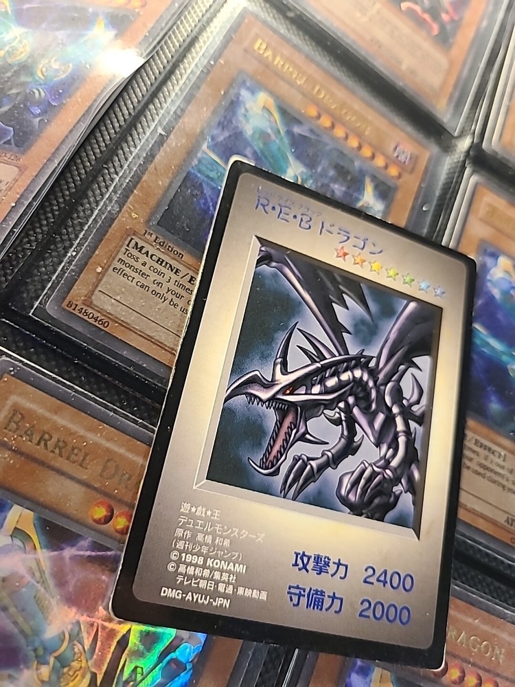 This Yu-Gi-Oh KONAMI Red Eyes Black Dragon GB Promo DM1 Monster Capsule Japanese i983 is a must-have for any collector or fan of the game. It features a powerful dragon creature type and is a rare 1st edition promo card. The card size is Japanese and the material is paper with a regular finish. This card is from the Yugi set and manufactured by Bandai in Japan. The language of the card is Japanese and it is a normal type card with common rarity. It is a vintage piece and has become a highly sought-after item for collectors. Without mentioning its condition, this card is in excellent quality and is perfect for adding to any Yu-Gi-Oh TCG collection. Don't miss out on the opportunity to own this unique and valuable card.
