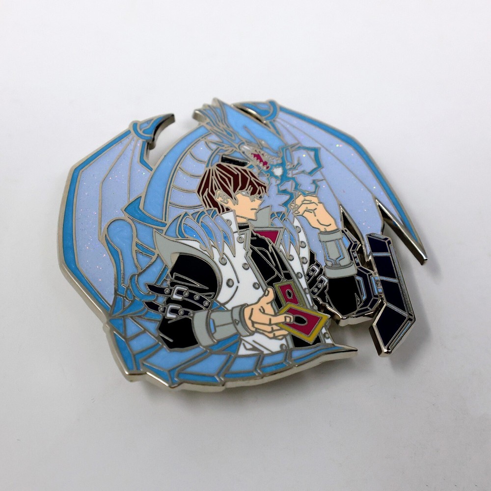 Kaiba & Blue Eyes White Dragon Enamel Pin 2.2 inches tall/wide Silver enamel Ships with tracking and delivery confirmation