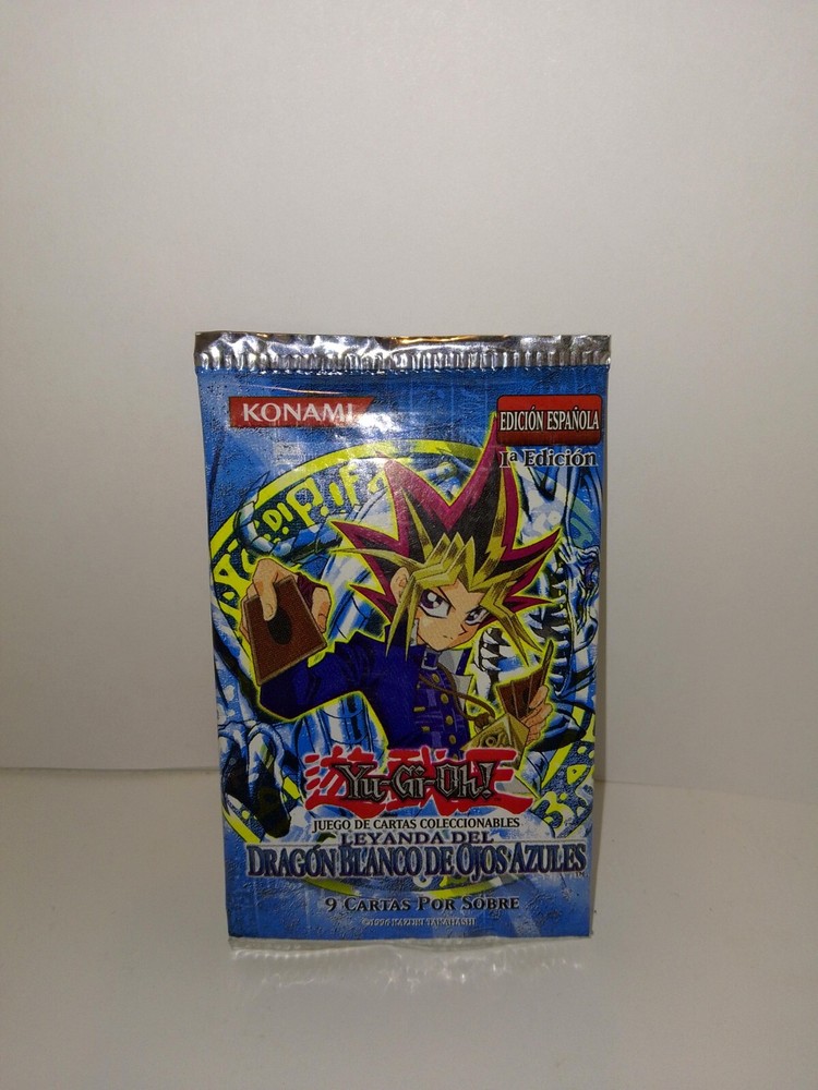 The Yu-Gi-Oh! Legend Of Blue Eyes White Dragon Legacy Booster Pack in Spanish contains 9 cards featuring characters like Yami Yugi and Yugi Muto from the Yu-Gi-Oh! TCG. This 1996 pack is part of the first set released for the game and is manufactured by Konami in a Japanese card size, offering a nostalgic experience for fans of the series. The pack is a single configuration and is ideal for collectors and players looking to enhance their decks with classic cards.