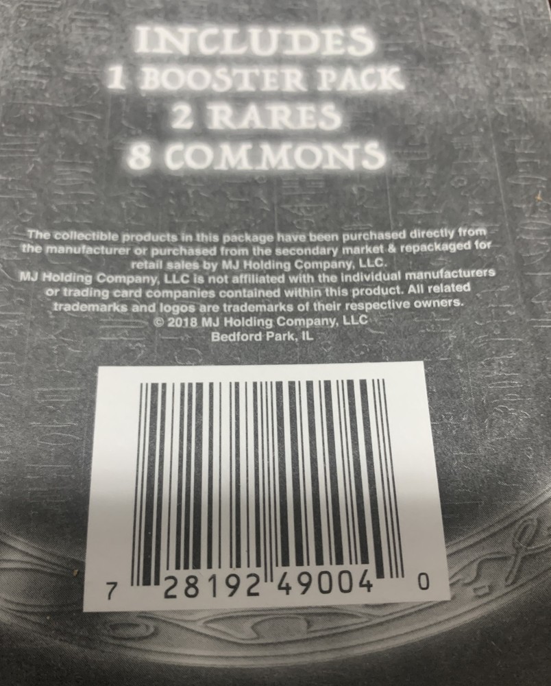 Item Description: 1 Brand New Sealed Yu-Gi-Oh! Legend of Blue Eyes White Dragon Booster Pack & Bonus Cards Contains: 1 Legends of Blue Eye White Dragon Booster Pack 10 additional bonus cards: 2 Rares & 8 Commons Packs manufactured in 2017 Product repackaged with bonus cards in 2018 by MJ Holding Condition of Items: Brand New Factory Sealed! Bulk Discount: 10% bulk discount when you by 2 or more! Shipping: Free Shipping! Ships UPS or USPS Terms & Conditions: You may not cancel your order after it is placed. Returns: No returns are accepted.