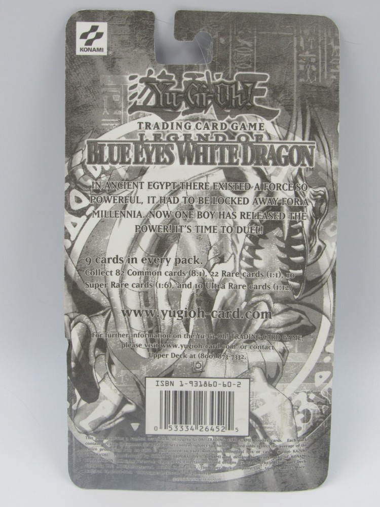 Sealed on Card - Yu-Gi-Oh! Legend of Blue Eyes White Dragon Booster Pack. Pack contains 9 Cards with 1 Rare Card in the Pack. The card has some bending and wear. The blister pack has some light discoloration and some denting. Packaging is not perfect but it is sealed and in new condition inside. Please see all the photos for better details. Any questions, please message me. Thanks for looking!