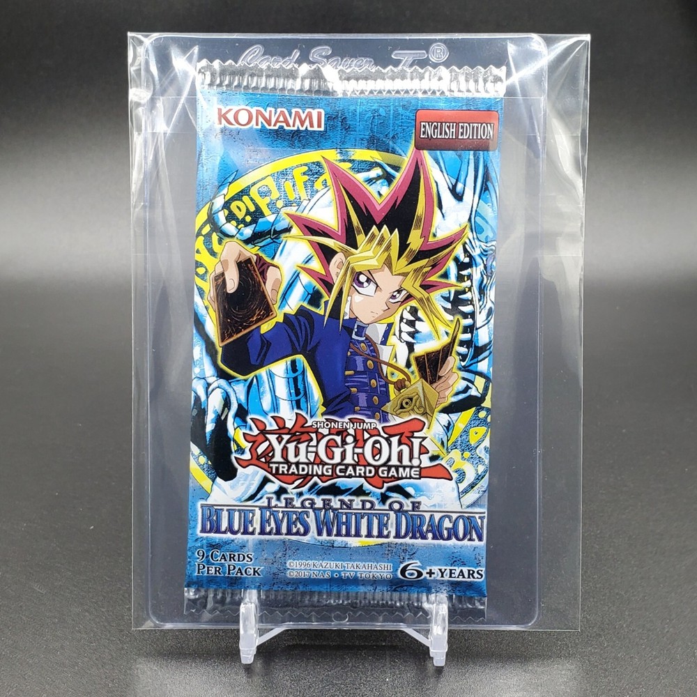You will receive 1x Yugioh Legend of Blue Eyes White Dragon Unlimited Booster Pack; team bagged in a Card Saver 1 and mailed in a ridged mailer. Message to buyer: Item above is described to its fullest in the item description. If you want more information or pictures on this item please message me. Item will be shipped bubble wrapped in a box; packaged with best practices. Please review the attached pictures in detail for condition and message me with any additional questions or concerns. As always, good vibes, great pulls, and happy hunting!