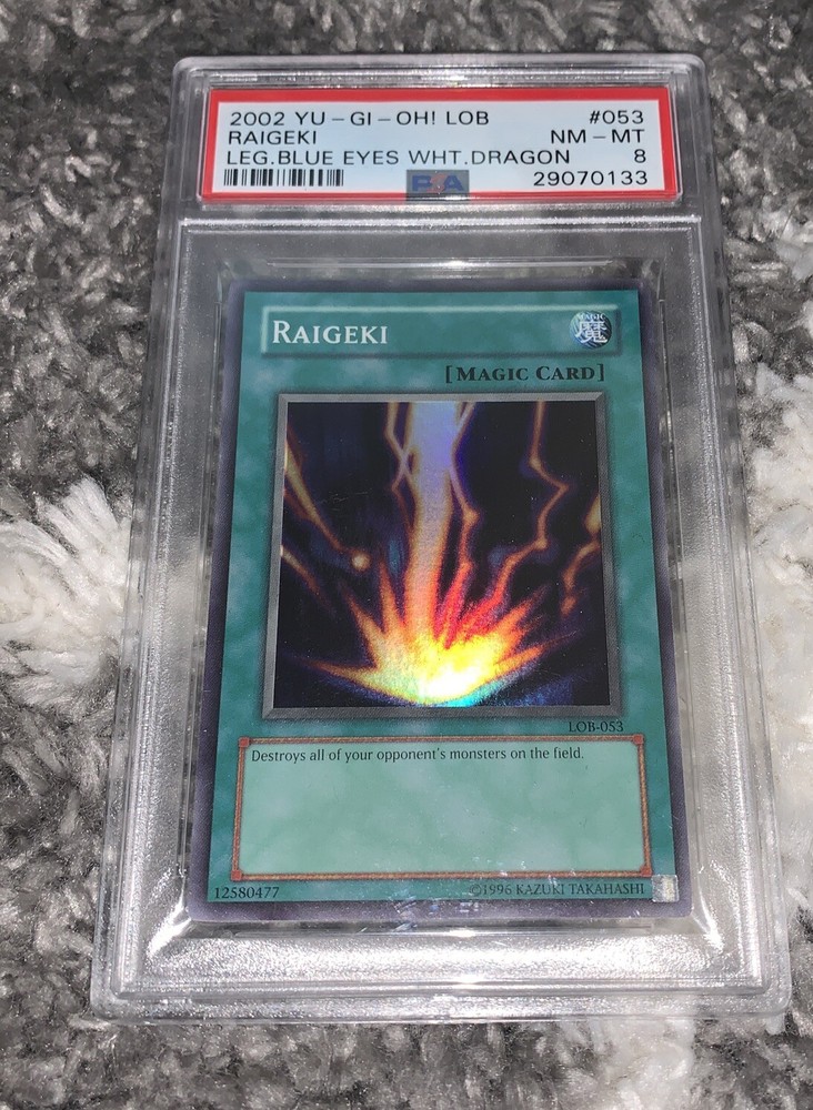 Just got this Raigeki card from LOB-053, and it’s in amazing condition! The artwork is crisp, and the edges are clean—no wear at all. Super happy with this addition to my collection. The seller was great, too—responsive and fast shipping. Definitely recommend for any Yu-Gi-Oh! fan!