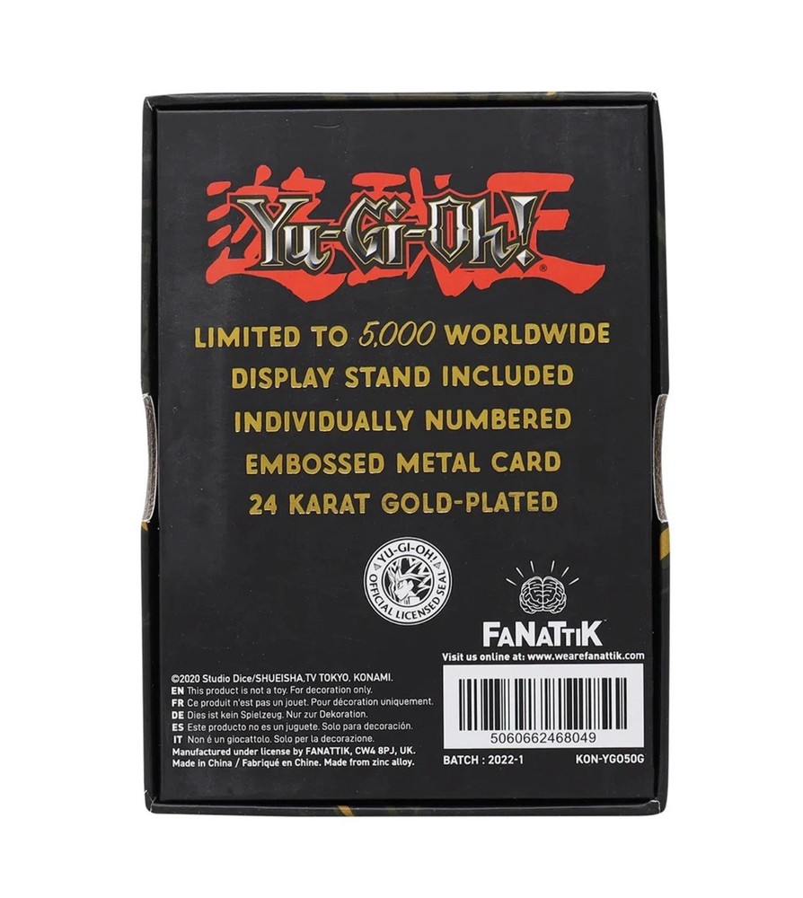 This limited edition Yu-Gi-Oh! card features the iconic Red-Eyes B. Dragon in stunning detail. The card is made of mixed materials and boasts a 24K gold finish, making it a must-have for any collector. The card is standard sized and written in English, with a production year of 2023. The Red-Eyes B. Dragon card is a part of the Yu-Gi-Oh! TCG game and can be used for play or display. Fanattik is the manufacturer of this highly detailed card, which is perfect for both adult and teen fans of the franchise. This card is rare and can be found in the Figures & Collectibles-Replicas category.