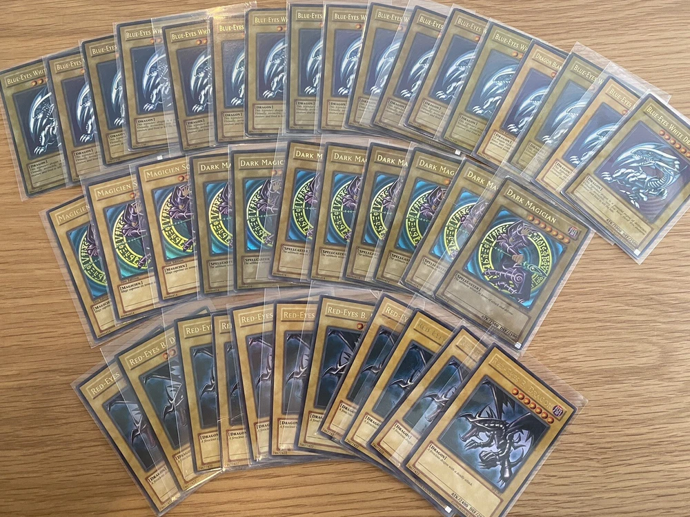 Big lot of 39 cards , first yugioh starter deck holos ever , includes 3 1st edition french dark magician’s And 1 french 1st edition blue eyes white dragon Cards are from lp to dmg