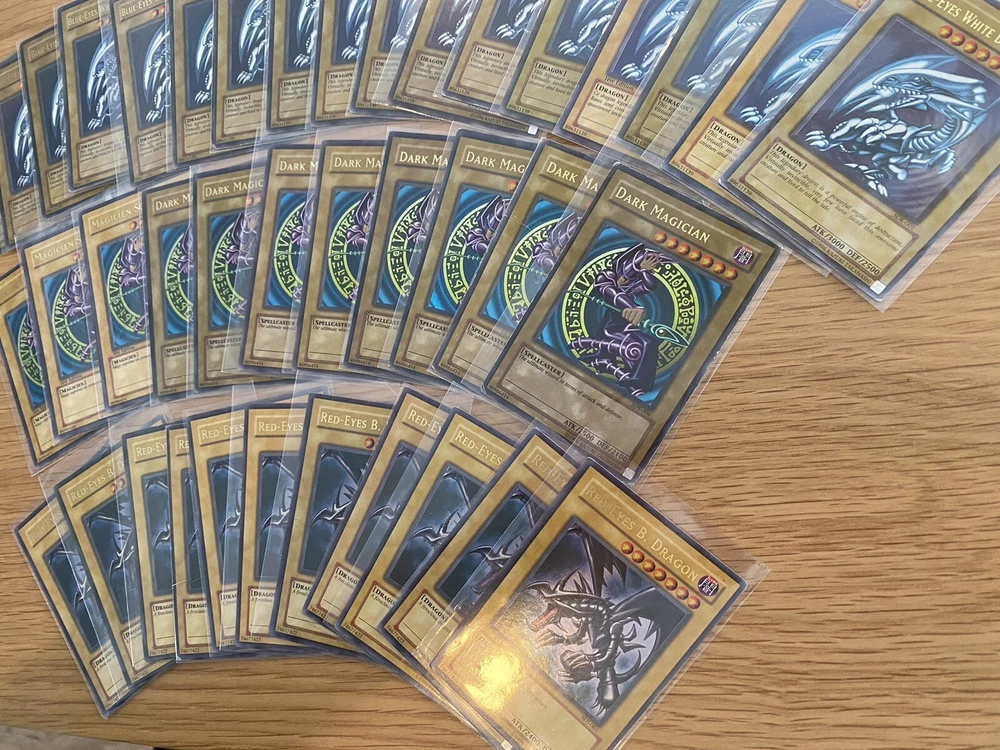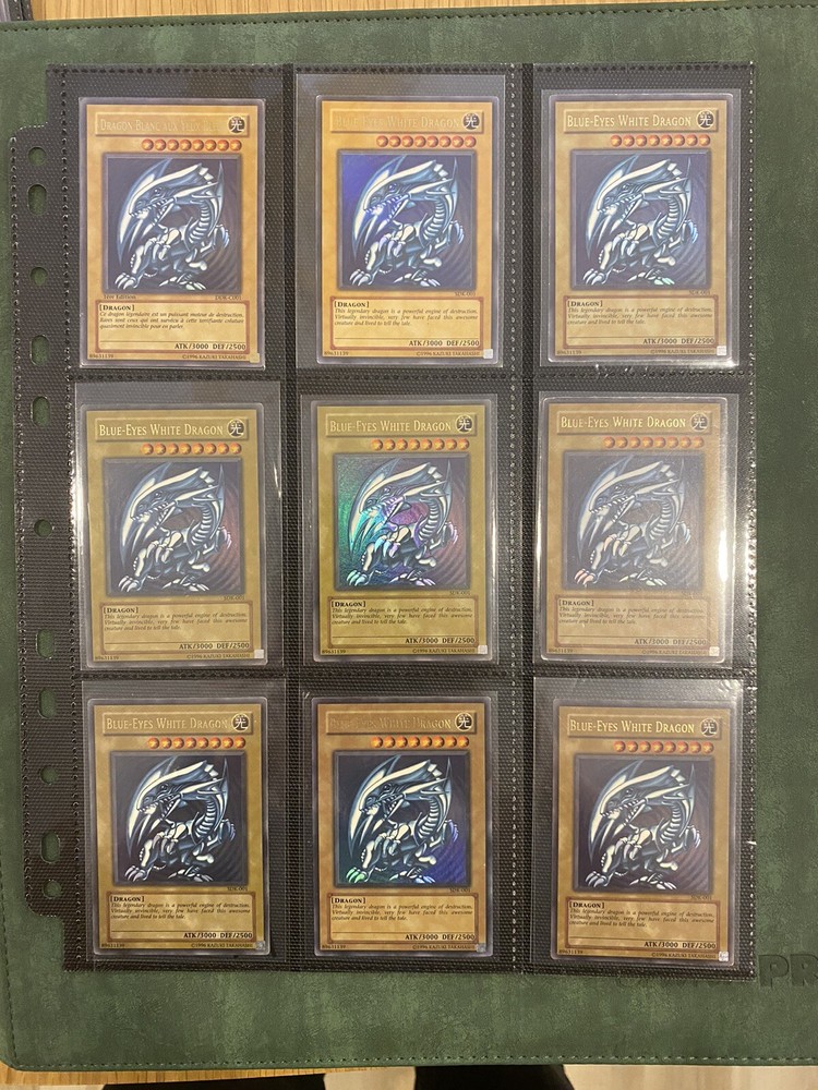 Big lot of 39 cards , first yugioh starter deck holos ever , includes 3 1st edition french dark magician’s And 1 french 1st edition blue eyes white dragon Cards are from lp to dmg...