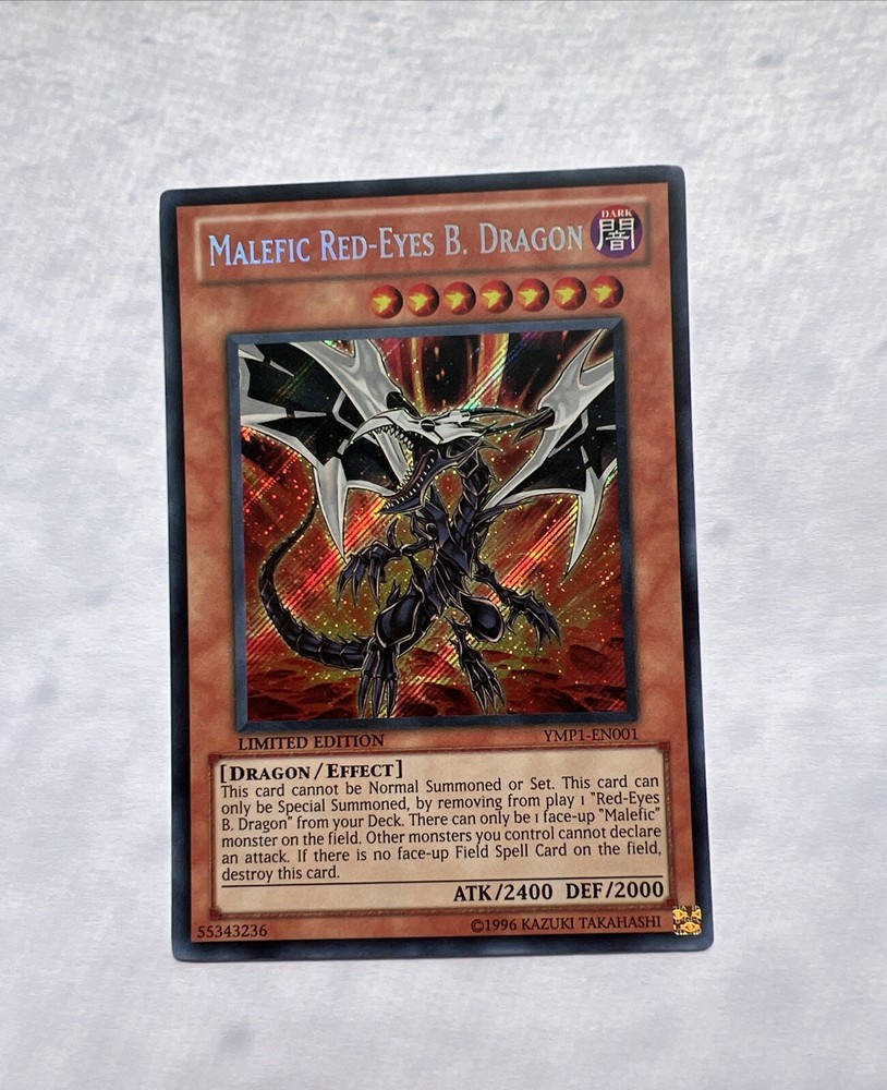This limited edition Yu-Gi-Oh! card features the dark attribute Maleficent dragon creature. It is part of the Yu-Gi-Oh! 3D Bonds Beyond Time Movie Pack set and has a card number of Ymp1-En001. The card is manufactured by Konami and has a foil finish. The card is perfect for collectors and players of the Yu-Gi-Oh! TCG game. It is suitable for children above the age of 6 and is an effect type card. The card is not autographed and is a secret rare with a limited edition release. Get your hands on this highly sought after card now!