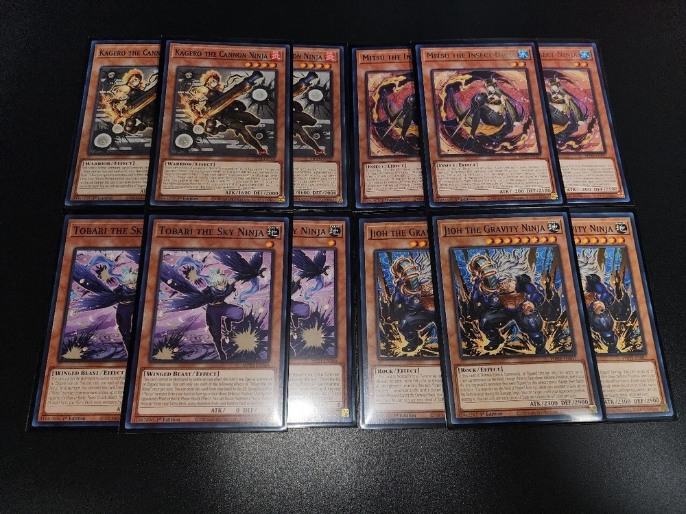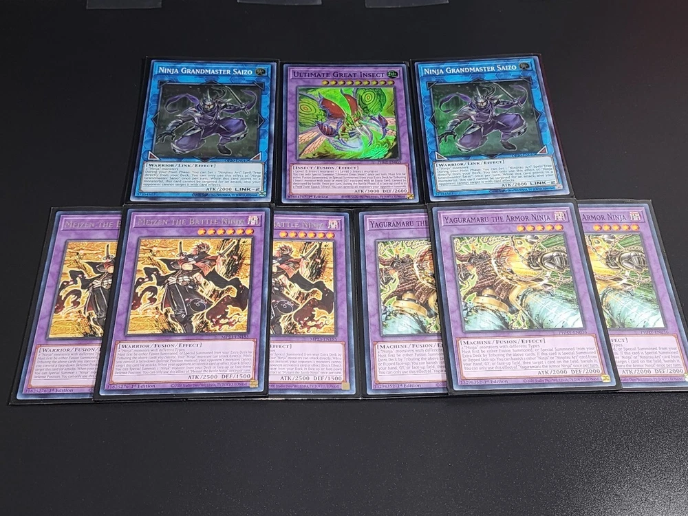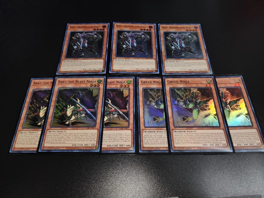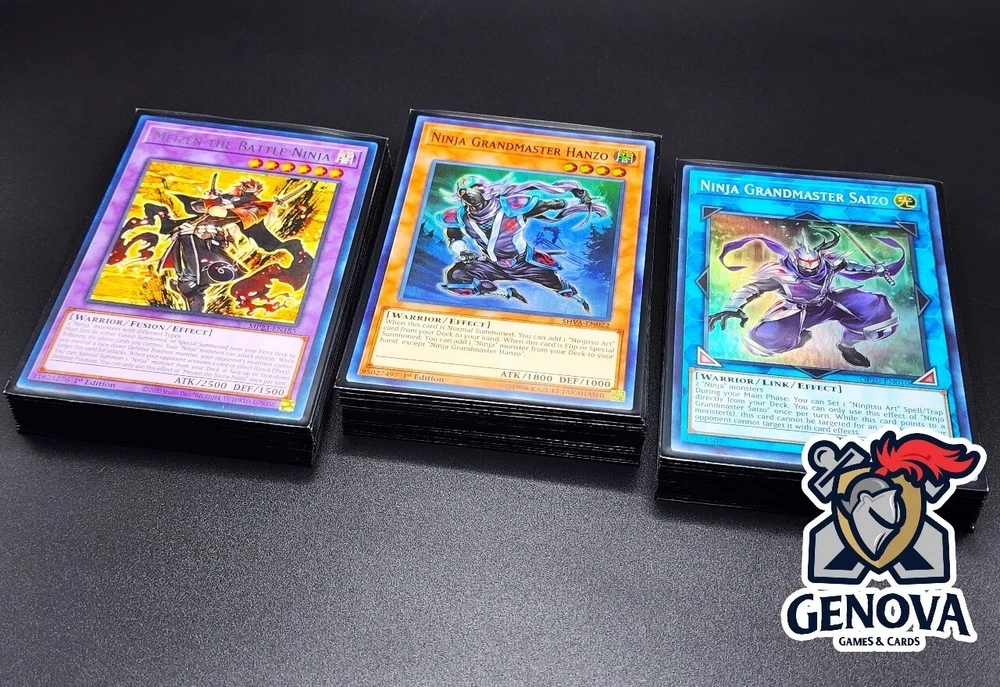 DESCRIPTION YuGiOh Ninja Deck , Grand Master Hanzo, Mitsu, Meizen MONTERS 3x Ninja Grandmaster Hanzo (super rare) 3x Green Ninja (super rare) 3x Baku The Beast Ninja (super rare) 3x Mitsu The Insect Ninja (rare) 3x Tobari The Sky Ninja 3x Kagero The Cannon Ninja 3x Jioh The Gravity Ninja SPELL 3x Ninjutsu Art Notebook of Mystery 3x Ninjutsu Art Tool - Iron Digger 3x Tench Kaimei 2x Book Of Moon 1x Reinforcement of the Army EXTRA 2x Ninja Grandmaster Saizo (super rare) 3x Meizen The Battle Ninja (rare) 3x Yaguramaru The Armor Ninja 1x Ultimate Great Insect SHIPPING We ship up to 3 day after payment, except for holidays and weekend or when the delivery service is not available. FOR UNITED STATES CUSTOMERS: We use First Class for all kind of shipments, this include tracking number and the estimated delivery day is between 3 to 5 days, If you need a faster service send us a Message and we will help you to choose it. FOR INTERNATIONAL CUSTOMERS (outside united states): International shipping prices differ for each country and are calculated automatically by eBay. Tracking information is not available for international buyers beside Canada, once the package leave the US, the buyer have complete responsibility for that shipping. All duties and taxes are the responsibility of the buyer. They are not included in the listed price. Please check with your domestic customs office to determine what your additional costs will be prior to bidding. If you need to combine shipping please send us a message to help you.