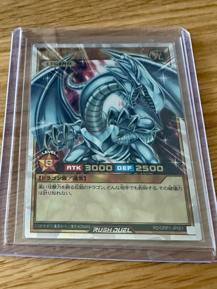 The Yu-Gi-Oh! OCG Blue-Eyes White Dragon (RD/ORP1-JP001) Over Rush Rare Japanese card is a highly sought-after collectible in the Yu-Gi-Oh! TCG universe. Manufactured by Konami in Japan, this card features the legendary Blue-Eyes White Dragon design, perfect for players aged 6 and up. With its rarity as an Over Rush Rare card from the - Yugi - set, this card is sure to be a valuable addition to any collection. Its unlimited edition and near mint condition make it a desirable item for fans and collectors alike. I have collected YuGiOh cards for over 10 years. I’m selling a few cards from my personal collection to help pay for my wedding. Feel free to reach out if you need anything.