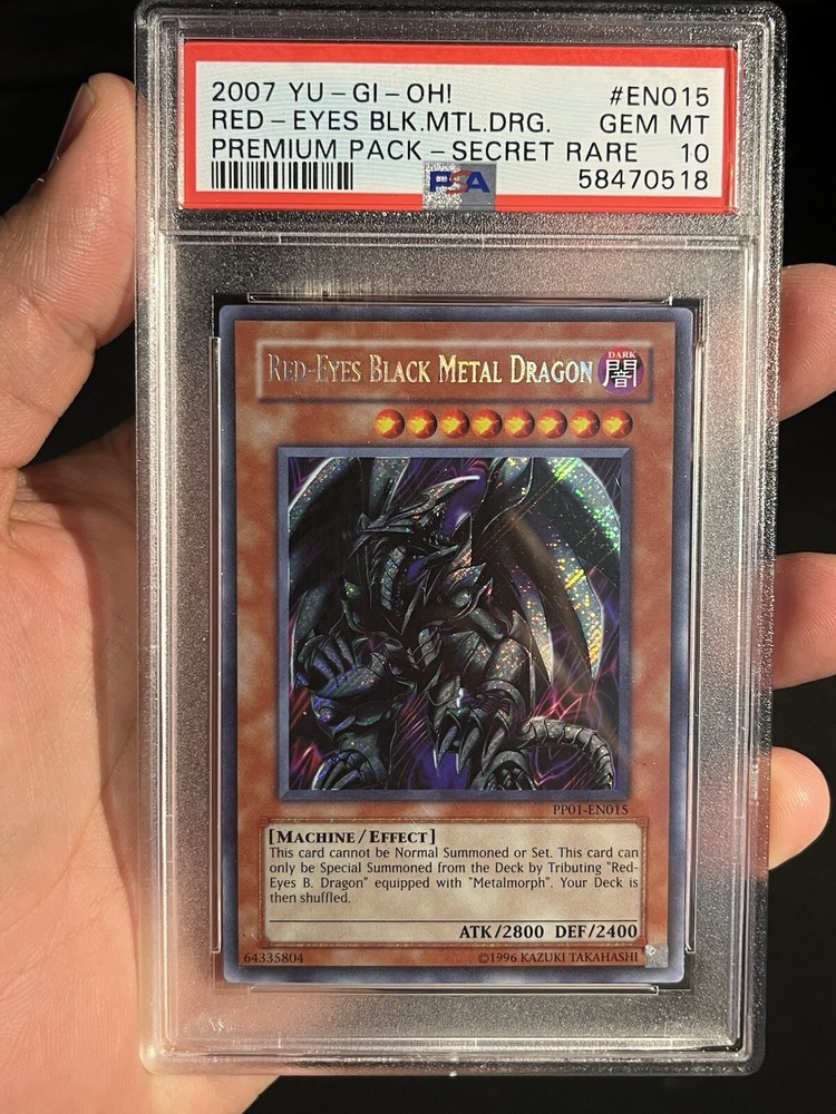 Yu-Gi-Oh! PSA 10 Secret Rare Red Eyes Black Metal Dragon PP01-EN015 POP 9. Condition is Graded. Shipped with USPS Priority Mail Padded Flat Rate Envelope.