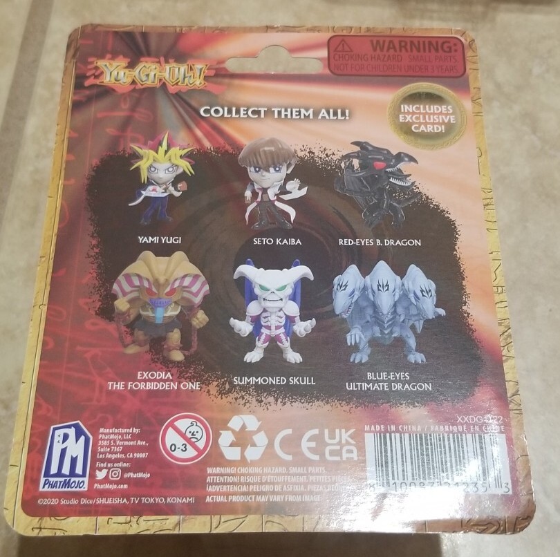 New in box Yu-Gi-Oh Phat Mojo Blue Eyes Ultimate Dragon Mini Figure With Exclusive Card. Measures about 2 inches. No returns or refunds.