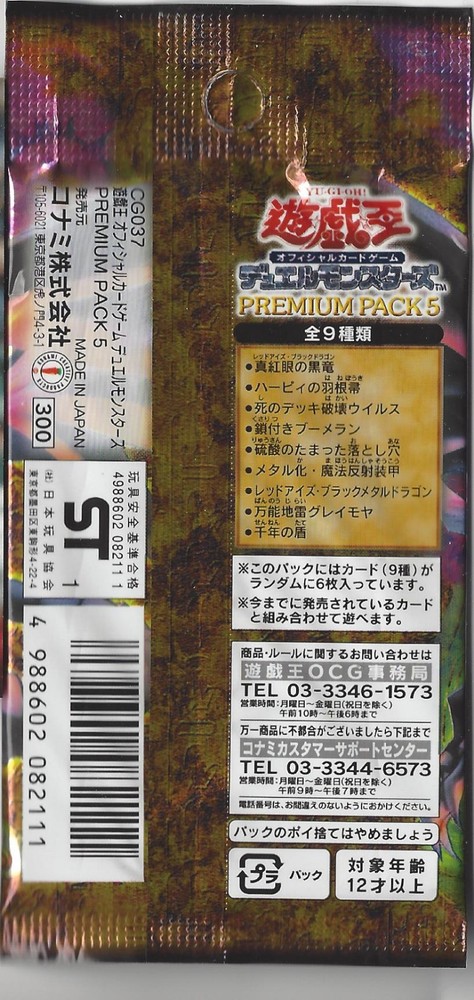 Welcome to the Auction! What you are bidding on is a 2001 Yugioh Premium Pack Volume 5 OCG Pack of C ards ! Pack is guaranteed FACTORY SEALED ! There are 9 cards per pack. Look for ultra and ultra parallel rare Red Eyes B. Dragon and Red Eyes Metal Dragon Cards! Pack is 100% factory sealed. Please refer to pictures or ask me if you need more information about the tin, as I will be happy to assist you. Obviously, a return or refund cannot be made if the tin has been opened, tampered with, or not in its original condition shown. Thanks! NOTE: International buyers are responsible for any shipping or customs fees. Item will be shipped in a USPS First Class box to preserve its condition. * Payment must be made within 48 hours of purchasing the item. * Item will be shipped through USPS First Class Mail. * Item will be shipped once payment is received. * Feel free to leave me any questions you have! Thanks and bid/buy in confidence! 100% feedback!