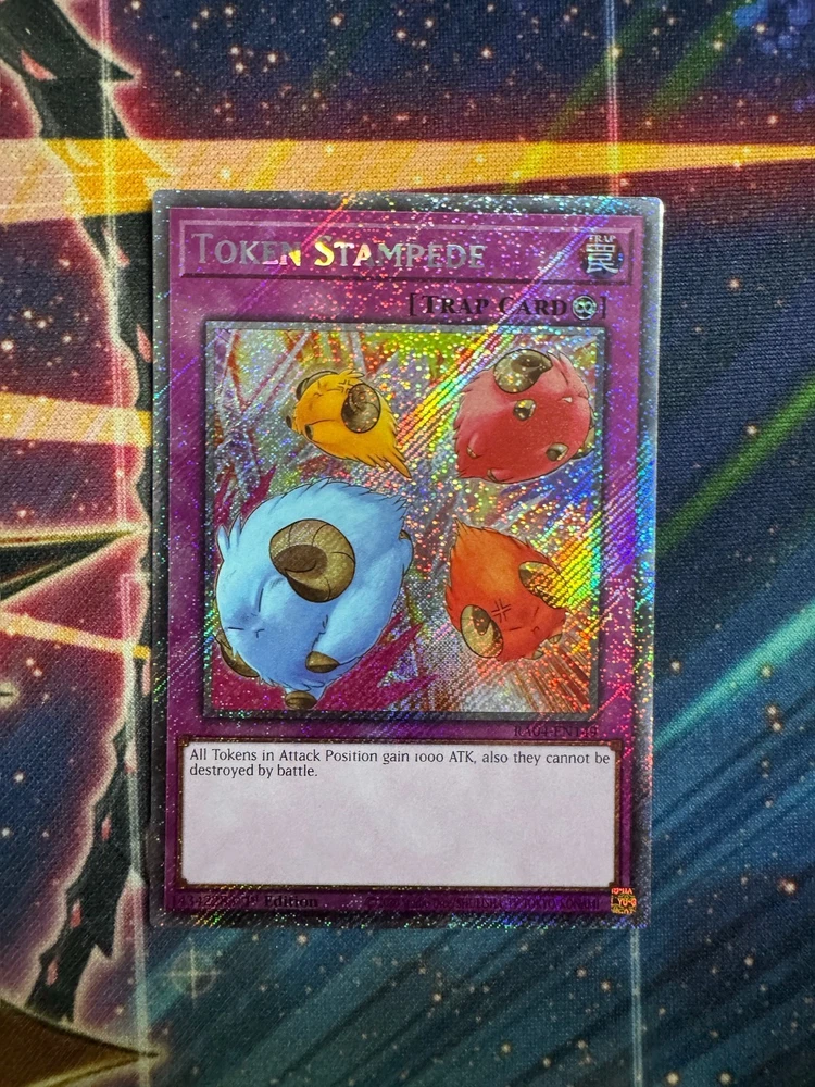This Yu-Gi-Oh! Quarter Century Stampede Platinum Secret Rare card is absolutely stunning! The artwork pops with incredible holographic detail, and the card arrived in flawless near-mint condition. The rarity makes it a must-have for serious collectors or duelists wanting to upgrade their deck. Very impressive quality—highly recommended for anyone who loves premium Yu-Gi-Oh! cards!