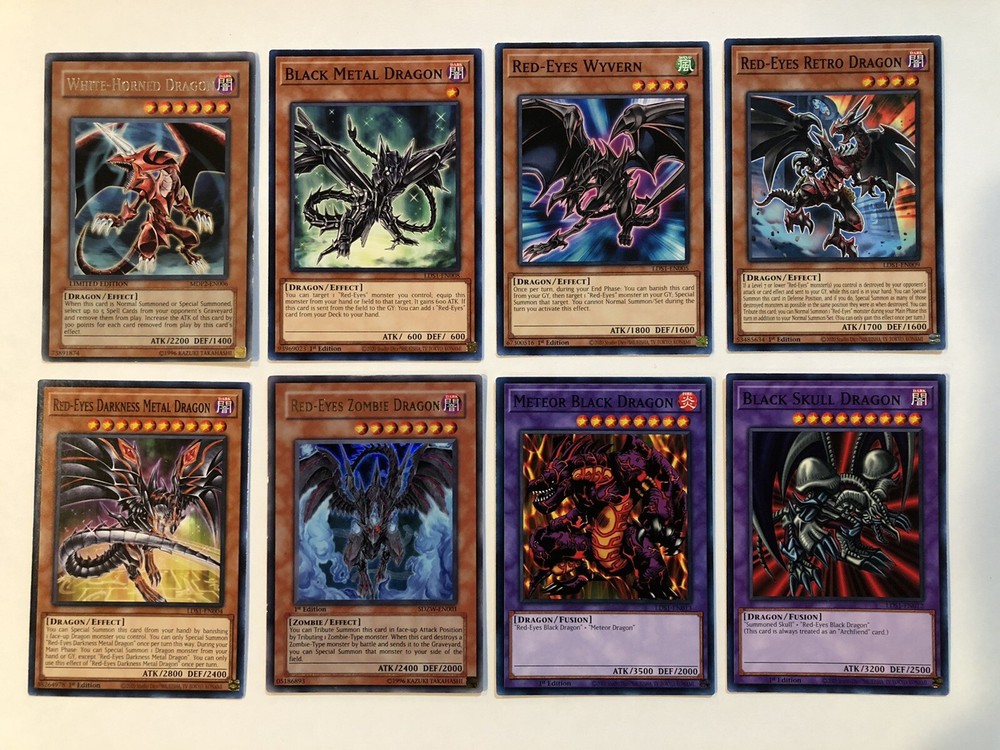 Yu-Gi-Oh Random Dragon Card Set (20 Cards). Condition is "Used". Shipped with USPS First Class. Some cards are used while the bulk of them are new opened from 2020 packs. Feel free to ask any questions, down below is a breakdown of the 20 cards. (Cards in multiples) (3x) Rainbow Dark Dragon, (2x)Red-Eyes Darkness Dragon, (2x) Red-Eyes Toon Dragon, (3x) Curse of Dragon, The Cursed Dragon, (2x) Malefic Red-Eyes Black Dragon (Single Cards) White-Horned Dragon, Black Metal Dragon, Red-Eyes Wyvern, Red-Eyes Retro Dragon, Red-Eyes Darkness Metal Dragon, Red-Eyes Zombie Dragon, Meteor Black Dragon, and Black Skull Dragon.