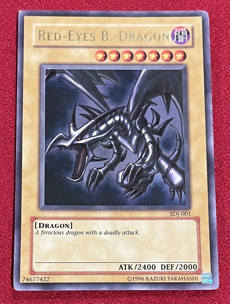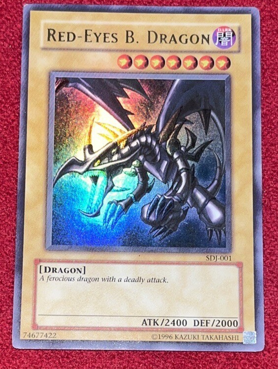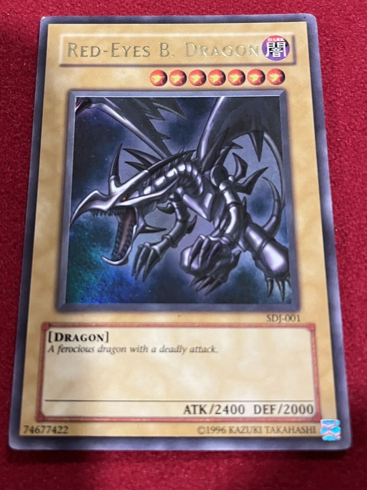 The product is a rare Yu-Gi-Oh! TCG card from the - Yugi - set, featuring the Red Eyes B. Dragon, card number SDJ-001. It is a holo card with a lightly played (Excellent) condition, manufactured by Dragon. This card is a collectible item for fans of the Yu-Gi-Oh! TCG, showcasing the iconic Dragons theme, making it a sought-after piece for collectors and players alike.