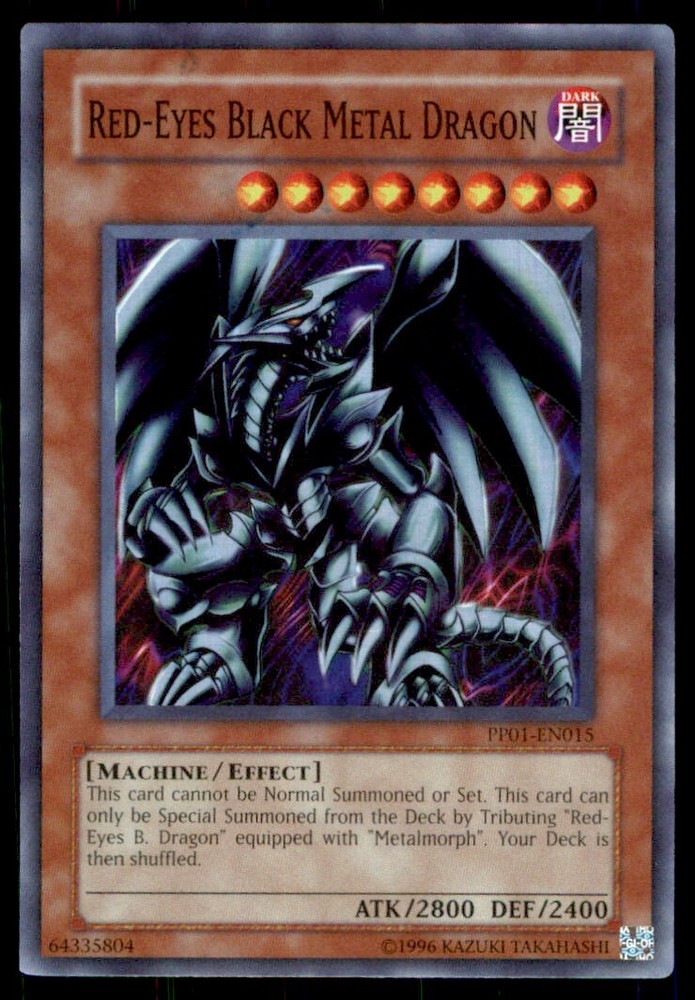 About Me Other Listings Feedback Add to Favorites Contact Me Bluenose Yu-Gi-Oh! Red- Eyes Black Metal Dragon #PP01-EN015 Light Play No stock photo / These are real scans or pictures Details Description: Red- Eyes Black Metal Dragon Category: Yugioh Year: 1996 Product: Yu-Gi-Oh! Card Number: PP01-EN015 Special: Light Play Dimensions: 3¼" x 2¼" SKU: YU B0003 R03 B (20) Payment Payment for buy it now is required immediately and for auctions it must be paid within 72 hours. Shipping Shipments usually make their way out in 3 business days. All orders to USA under 800$ USD typically are NOT subject to import or duty! We also offer free shipping on all our cards for north america. Returns and Claims Please view listing photo and description prior to purchase of card to make sure the card and condition is right for you! About Us Please keep in mind the following conditions .-------------------------------------------Near Mint: a card that shows very little to no signs of ware or usage such as very little whiting. -------------------------------------------Light Play: A card that shows signs of ware such as but not limited to whiting, slight bend or scratches. -------------------------------------------Heavy Play: A card that shows signs of ware, whiting, bending, creasing, folding or other various issues.-------------------------------------------Damaged: a card in very bad condition can have some or all of the above mentioned condition notes including peeling, stains, writing, etc.-------------------------------------------The photo in ads are the EXACT card you will recieve. Listing By Kronocard trading cards software v2.7.0.1