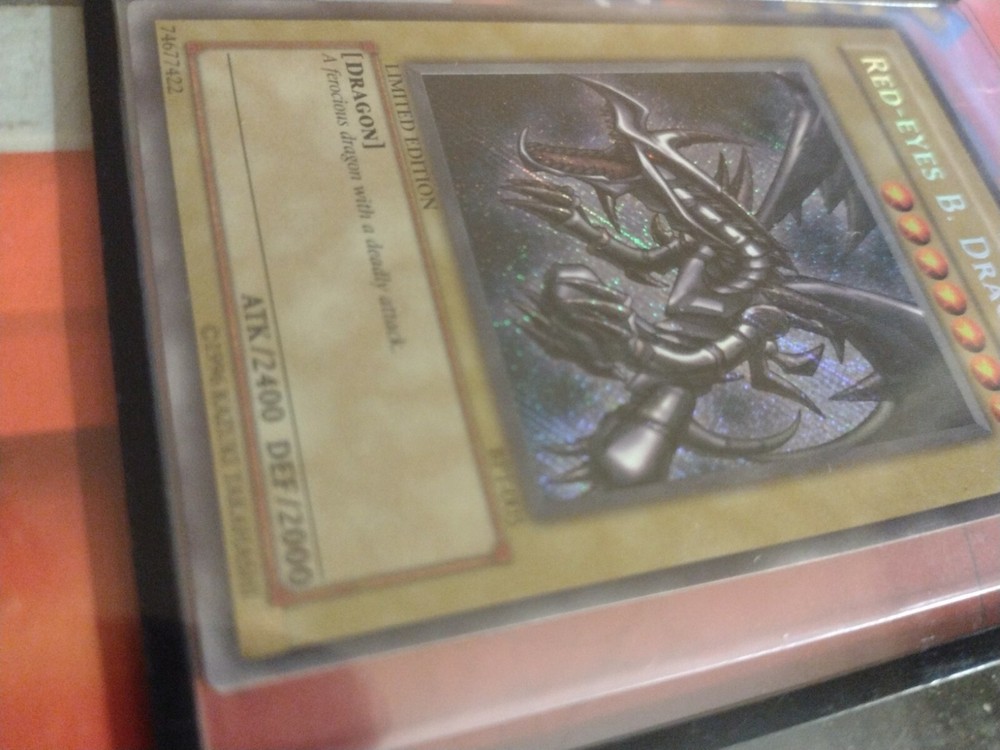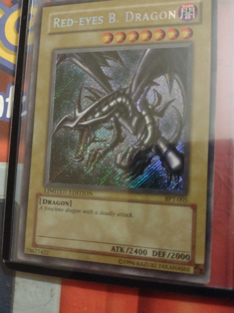 Yu-Gi-Oh Red-Eyes B. Dragon - BPT-005 - Secret Rare - Misprint PSA Ready "N". This card has a Holo misprint in the N. It is a different shade at different angles. This card is in mint condition I've owned it since I was 5 and had been in my collection the entire time. Looking into rarity and selling my old collections recently I came across a couple other unique misprints that I based my selling price on. Message me with any questions or request more pictures. Thank you all enjoy!!!