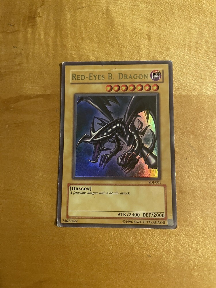 This iconic YuGiOh! Red-Eyes B. Dragon card, SDJ-001, is a highly sought-after addition to any collection. With its stunning holo finish, this card is a must-have for fans of the Yu-Gi-Oh! TCG, especially those who prefer the color light. Featuring the powerful Dragons card name and manufactured in 1996, this card is a true gem for any collector. Add it to your collection today!
