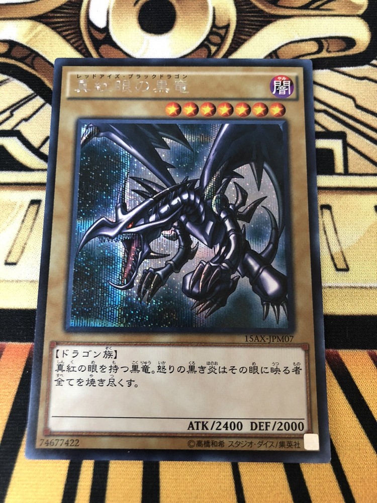 Yu-Gi-Oh! Red-Eyes Black Dragon, Secret Rare, 15AX-JPM07, Japanese in Excellent condition. This card was included in the Japanese "Duelist Road - Piece of Memory; Yugi Muto" set which was released in 2015 to celebrate the 15th anniversary of Yu-Gi-Oh! This is a super iconic card which looks amazing in this rarity. Its the cheapest on eBay so grab yourself a bargain and be sure to check out my other Yu-Gi-Oh! Listings for more awesome old school Japanese and English cards. All cards sent double sleeved and in a top loader.