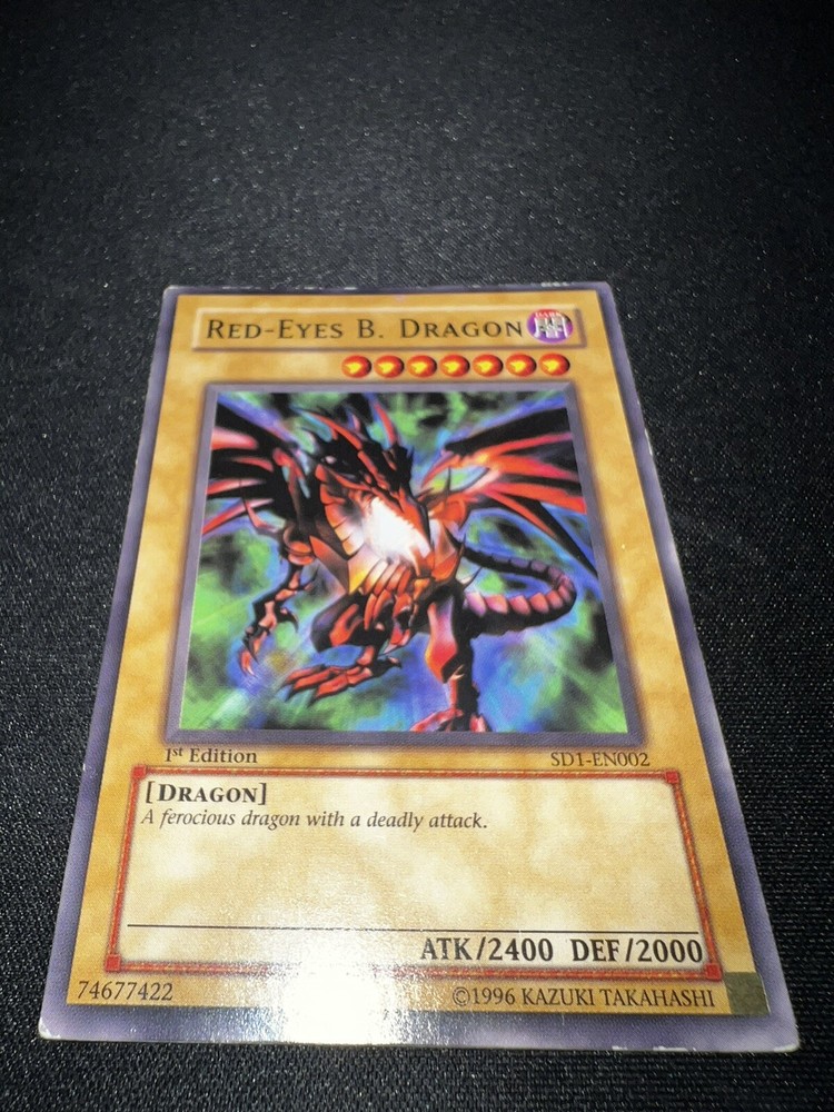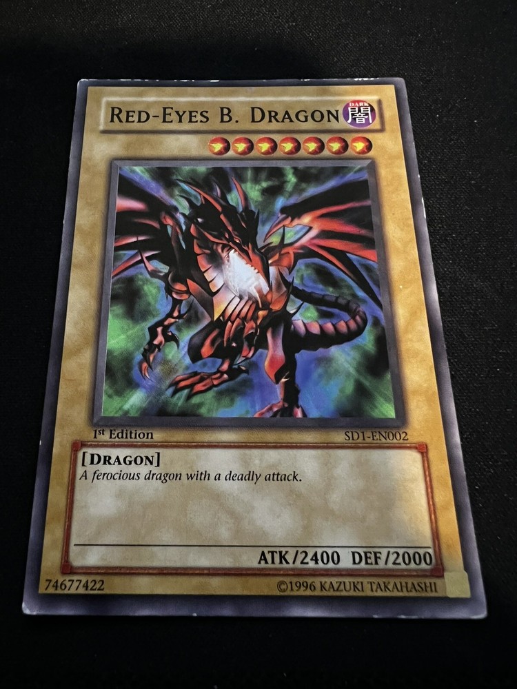 Yu-Gi-Oh! Red-Eyes Black Dragon 1st Edition! Lightly Played SD1-EN002. Card has minimal wear on some edges, but otherwise is in very good condition. This card is printed with "1st Edition". Card will be well protected in shipping and will be shipped in a hard plastic card protector. If you have any questions please feel free to reach out and I'll be happy to help! Free returns.