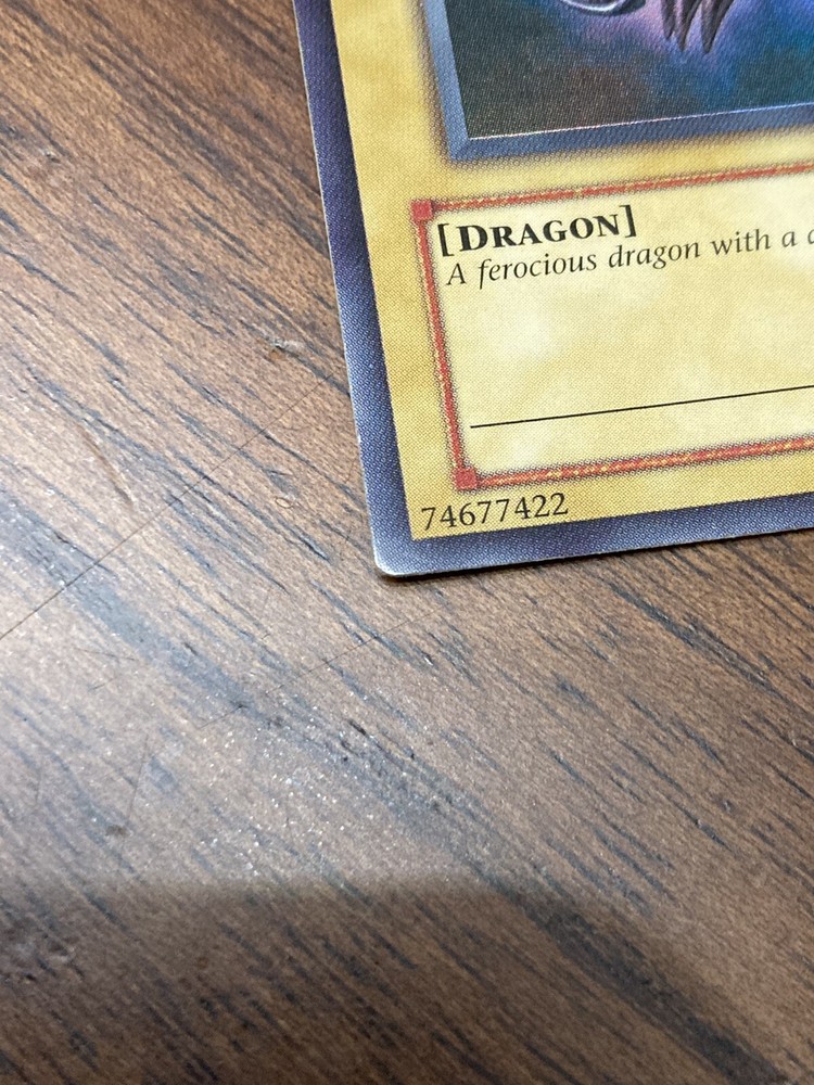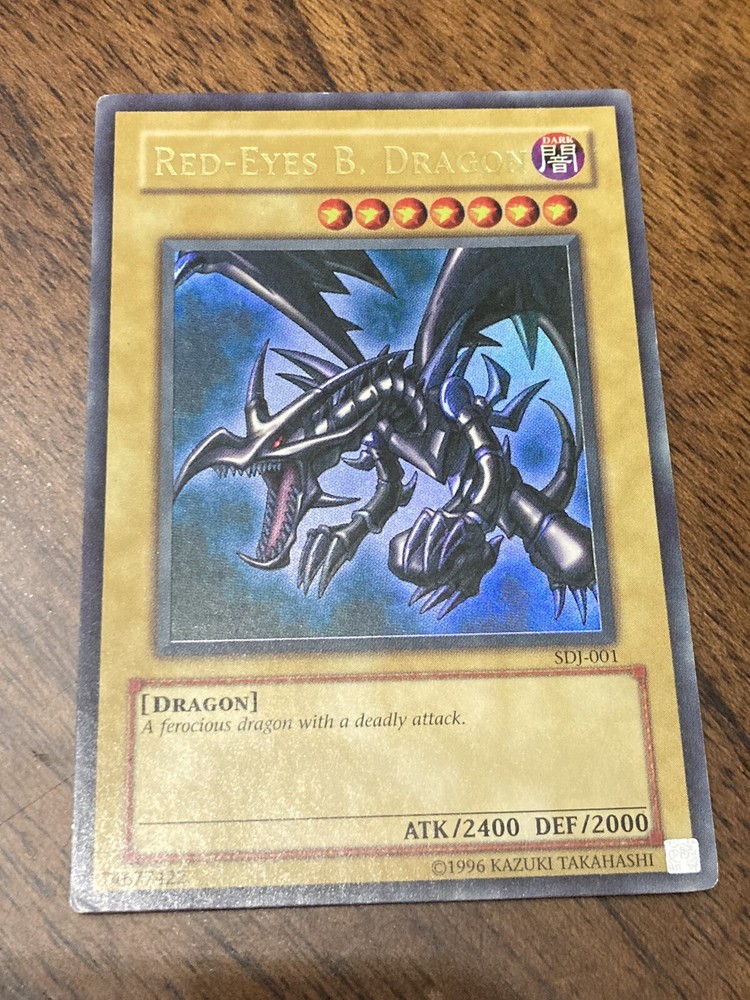 Yu-Gi-Oh! Red-Eyes Black Dragon 1st Edition Starter Deck Joey SDJ-001. Card is has slight wear and one noticeable area wear the backing was stripped Sold as-is
