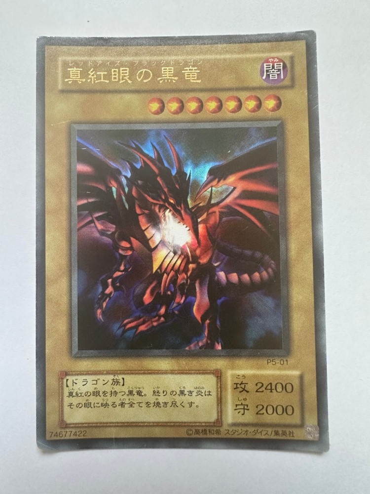 "Yu-Gi-Oh! Red-Eyes Black Dragon, Dark Attribute, Dragon Type, 2400 ATK" Key Features **Product Title:** Red-Eyes Black Dragon Card (P5-01) - **Card Name:** Red-Eyes Black Dragon - **Attribute:** Dark - **Card Type:** Dragon - **Attack Points:** 2400 - **Defense Points:** 2000 - **Level:** 7 - **Effect:** "The Black Dragon with Red Eyes. Its black flames incinerate all who reflect in its gaze." - **Card Number:** P5-01 - **Design:** Features an impressive illustration of the black dragon with a fantastical light background. This card is a part of a popular trading card game, making it a must-have for collectors and players alike. Specifications Brand Yu-gi-oh Country Japan Game Yu-Gi-Oh! TCG Card Type Normal Manufacturer Konami Card Size Japanese Material Paper Vintage Yes Product Description Item Title Attack On Titan Armin Round One Chibi Character Acrylic Keychain Payment Supports managed payments Please pay within 5 days after auction is finished. About Us We are located in Japan. It's our pleasure to make you happy by proposing our recommend item. If you have any questions or request about items, please feel free to ask us. International Buyers - Please Note: -Import duties, taxes, and charges are not included in the item price or shipping charges. These charges are the buyer's responsibility. -Please check with your country's customs office to determine what these additional costs will be prior to bidding/buying. -These charges are normally collected by the delivering freight (shipping) company or when you pick the item up - do not confuse them for additional shipping charges. -We do not mark merchandise values below value or mark items as - gifts - The US and International government regulations prohibit such behavior. Thank you for your understanding.