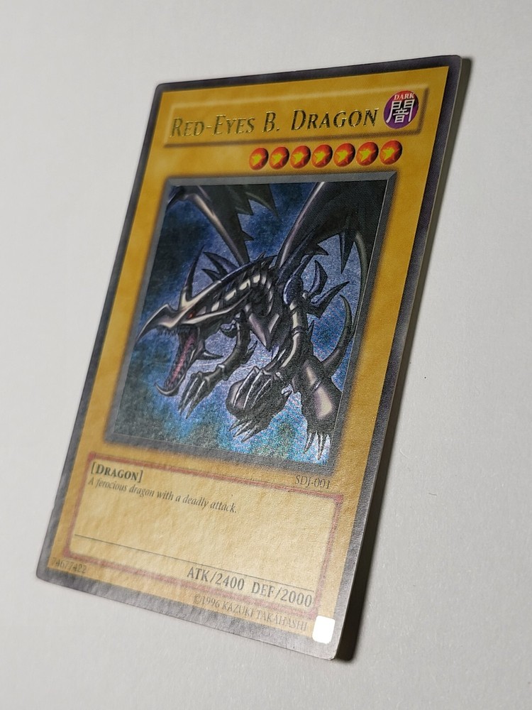 Thank you for taking a look at my Red-Eyes Black Dragon Joey SDJ-001 Unlimited Ultra Rare card! This card has been lightly played with some evidence of use. This card can be used as playable or as a collectible. Please make sure to take a close look at all photos posted before making an offer as I do not offer refunds.