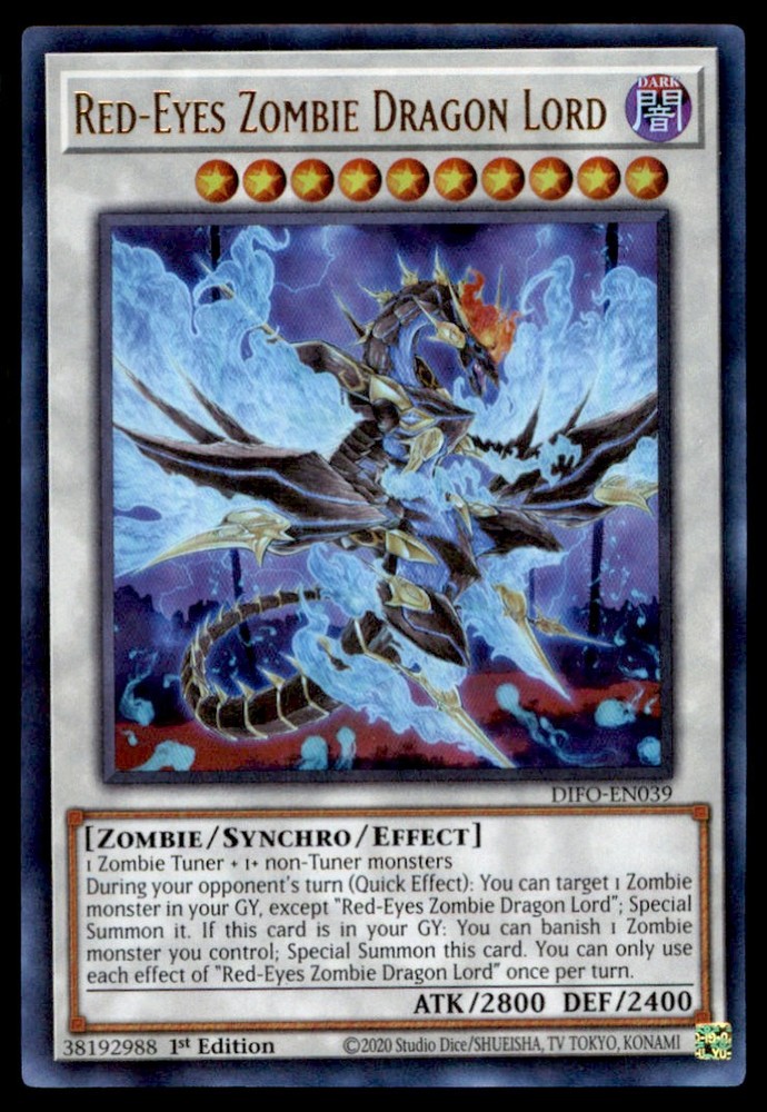 About Me Other Listings Feedback Add to Favorites Contact Me Bluenose Yu-Gi-Oh! Red-Eyes Zombie Dragon Lord #DIFO-EN039 1st Edition Near Mint No stock photo / These are real scans or pictures Details Description: Red-Eyes Zombie Dragon Lord Category: Yugioh Year: 1996 Product: Yu-Gi-Oh! Card Number: DIFO-EN039 Special: 1st Edition Near Mint Dimensions: 3½" x 2¼" SKU: YU B0004 R03 A (23) Payment Payment for buy it now is required immediately and for auctions it must be paid within 72 hours. Shipping Shipments usually make their way out in 1-2 business days. Returns and Claims Please view listing photo and description prior to purchase of card to make sure the card and condition is right for you! About Us Please keep in mind the following conditions .-------------------------------------------Near Mint: a card that shows very little to no signs of ware or usage such as very little whiting. -------------------------------------------Light Play: A card that shows signs of ware such as but not limited to whiting, slight bend or scratches. -------------------------------------------Heavy Play: A card that shows signs of ware, whiting, bending, creasing, folding or other various issues.-------------------------------------------Damaged: a card in very bad condition can have some or all of the above mentioned condition notes including peeling, stains, writing, etc.-------------------------------------------The photo in ads are the EXACT card you will recieve. Listing By Kronocard trading cards software v2.8.2.3