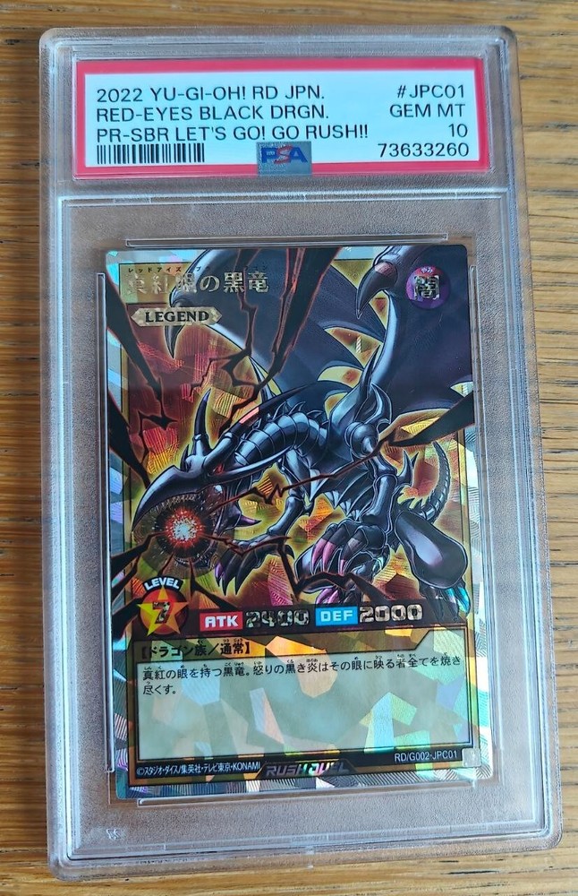 This rare and highly sought-after Yu-Gi-Oh! card features the iconic Red Eyes Black Dragon, and is sure to be a valuable addition to any collection. With its stunning artwork and intricate detailing, this card is a must-have for any fan of the game. It is perfect for players and collectors alike, and is sure to impress. Don't miss out on the chance to own this amazing piece of Yu-Gi-Oh! history.