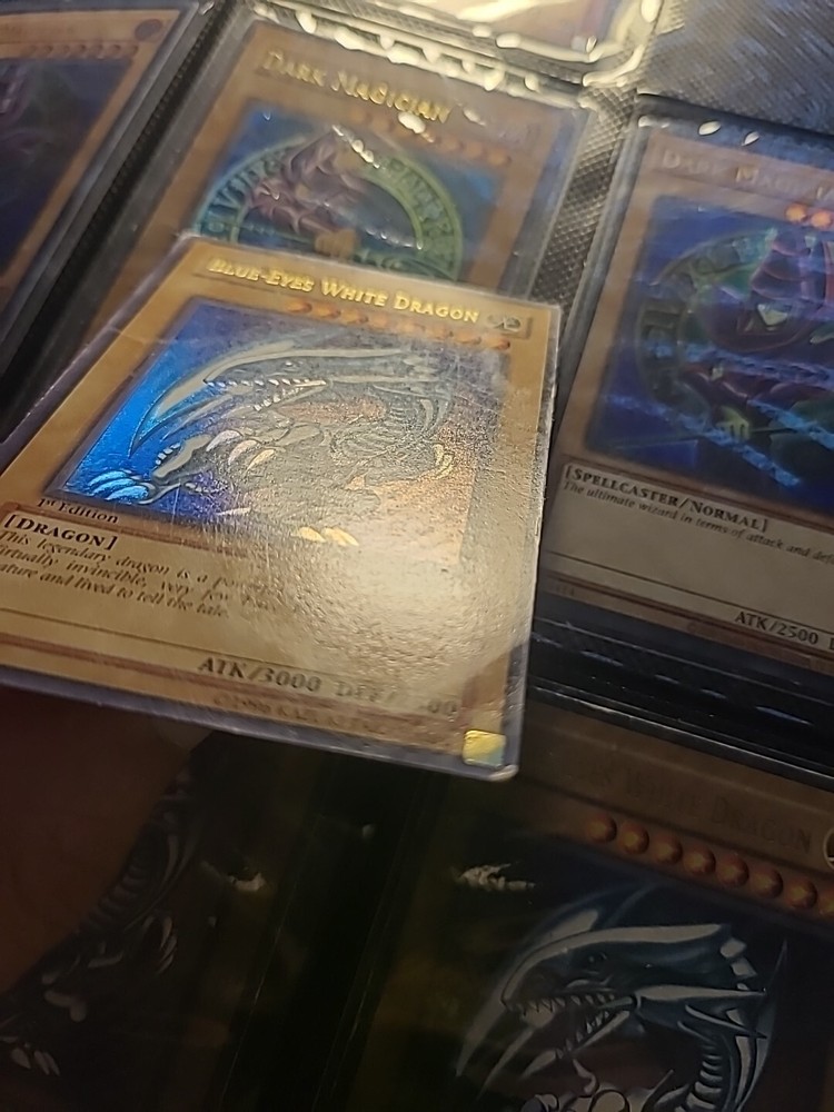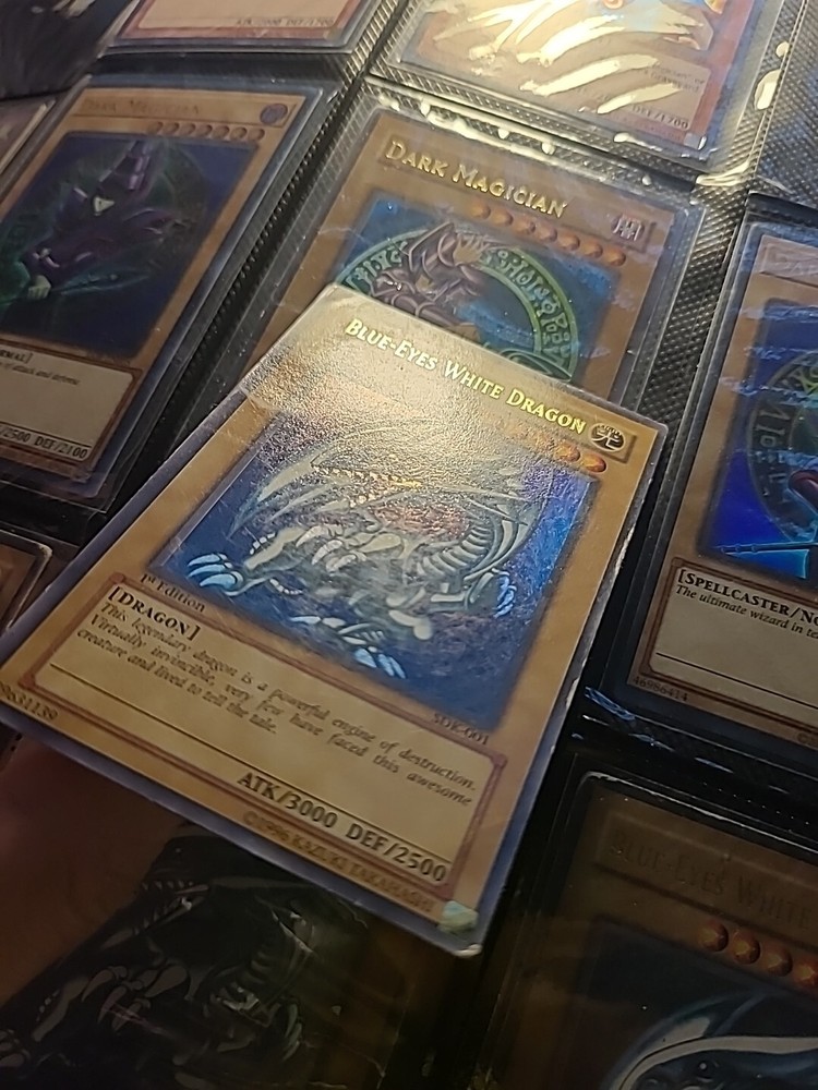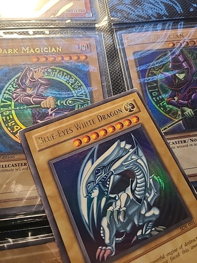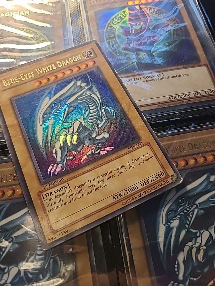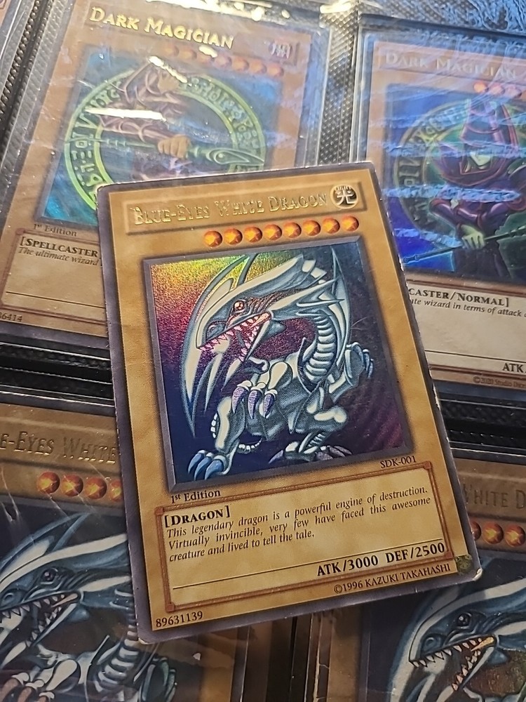 This Yu-Gi-Oh! SDK-001 card features the iconic Blue Eyes White Dragon in Ultra Rare 1st Edition. The card is made of paperboard material with a foil finish and is written in Japanese language. It belongs to the Legend of Blue Eyes White Dragon set and has the card number SDK-001. The card is perfect for collectors and fans of the Yu-Gi-Oh! TCG game. The card's attributes include Light color, Normal creature/monster type, 2500 defense/toughness, and 3000 attack/power. It is a vintage card manufactured by Konami in 2001 and is suitable for ages 4+. The card is not autographed and is part of the Ultra Rare rarity. This card is a must-have for any Yu-Gi-Oh! enthusiast and is a valuable addition to any collection.