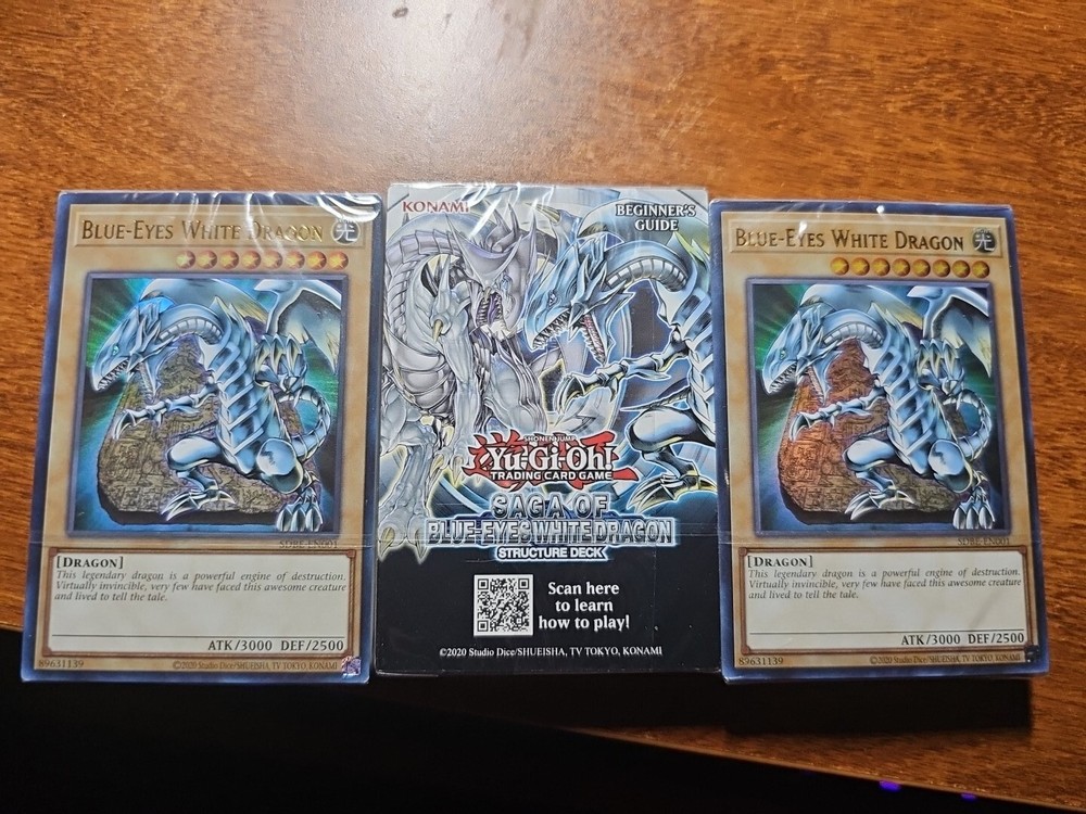 This Yu-Gi-Oh! TCG Saga of Blue-Eyes White Dragon set includes three sealed decks and a Dark Magican LTD FigPin. It's perfect for fans and collectors of the popular card game. The decks feature the Structure Deck configuration and are ready to play straight out of the box. The set is categorized under Toys & Hobbies and Collectible Card Games, specifically CCG Sealed Decks & Kits. Whether you're a beginner or a seasoned player, this set is a great addition to any collection. Take your Yu-Gi-Oh! battles to the next level with the Saga of Blue-Eyes White Dragon deck set.