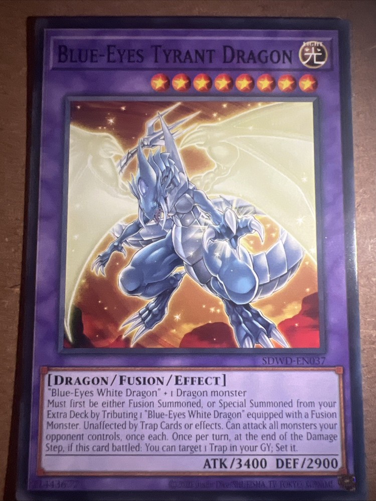 Elevate your Yu-Gi-Oh! TCG collection with the formidable Blue-Eyes Tyrant Dragon from the Structure Deck: Blue-Eyes White Destiny set. This Effect-type dragon card is a must-have for players and collectors alike, featuring the iconic Blue Eyes White Destiny series that brings a classic feel to your deck. SDWD-EN037 is a non-autographed, English language card that boasts the first edition release, adding a layer of collectibility to your gaming experience. Constructed from quality card stock, the Blue-Eyes Tyrant Dragon card maintains the standard size for seamless integration into your existing collection. This card is produced by Konami and originates from the United States, ensuring authenticity and a connection to the rich Yu-Gi-Oh! TCG community. Enhance your gameplay or display with this captivating creature from the revered Structure Deck series.