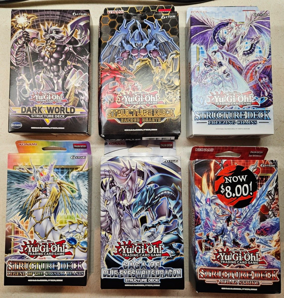 A nice bunch of sealed Structure Decks, available to be bought as a single item or multiple to be shipped together. (Also if you buy 2 or more you get 10% Off!) If you have any questions feel free to message me.!