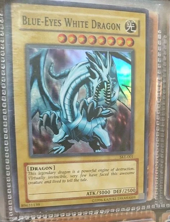 This rare and highly sought-after card is a must-have for any serious Yu-Gi-Oh! TCG collector. Featuring the iconic Blue-Eyes White Dragon character, this Super Rare card is from the Yugi set and has a card number of SKE-001. With a powerful 3000 attack and 2500 defense/toughness, this monster card is sure to give you an edge in any game. The card is in excellent shape and has been well-maintained, with a beautiful holo finish that shimmers in the light. It is a 1st Edition card and is manufactured by Konami, a trusted name in the industry. Whether you're a fan of the game or a collector of Yu-Gi-Oh! TCG cards, this Blue-Eyes White Dragon card is a valuable addition to any collection.