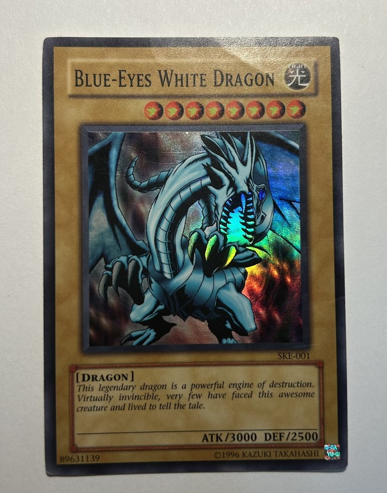 This rare and highly sought-after Yu-Gi-Oh! TCG card features the iconic Blue-Eyes White Dragon, with 2500 defense and 3000 attack. It is part of the Starter Deck: Kaiba Evolution set, and is a Super Rare card with a 1st Edition feature. The card is in English language and has the card number SKE-001. This collectible card is perfect for fans of the Yu-Gi-Oh! TCG game, and is manufactured by Konami. It is a Normal card type, and is suitable for any player looking to add a powerful and rare card to their collection. Don't miss out on the opportunity to own this incredible card!