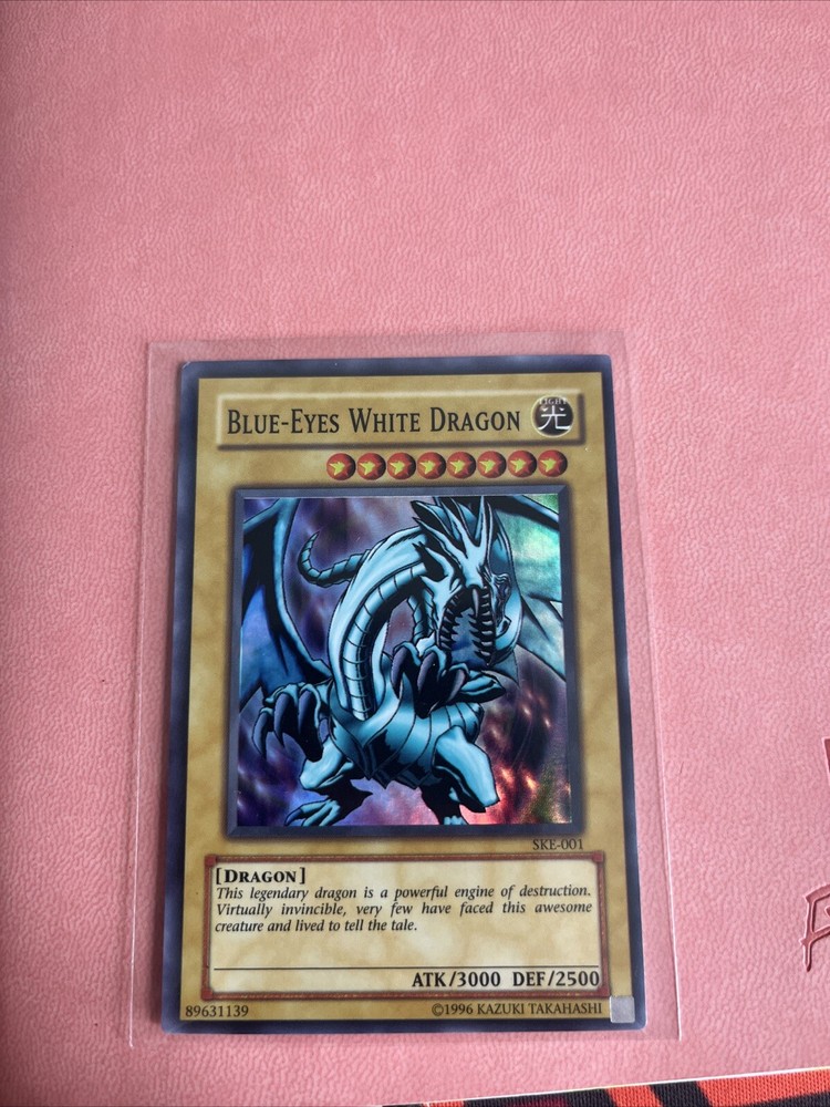 This Yu-Gi-Oh! TCG card features the iconic Blue-Eyes White Dragon in its Kaiba Evolution form. With a defense of 2500 and an attack of 3000, this super rare card is a must-have for any collector or player. It is an unlimited edition and comes in English language, with card number SKE-001. The card belongs to the Starter Deck set and is a normal type card. It is manufactured by Konami and is part of the Collectible Card Games category under Toys & Hobbies. Get your hands on this rare and powerful card today!