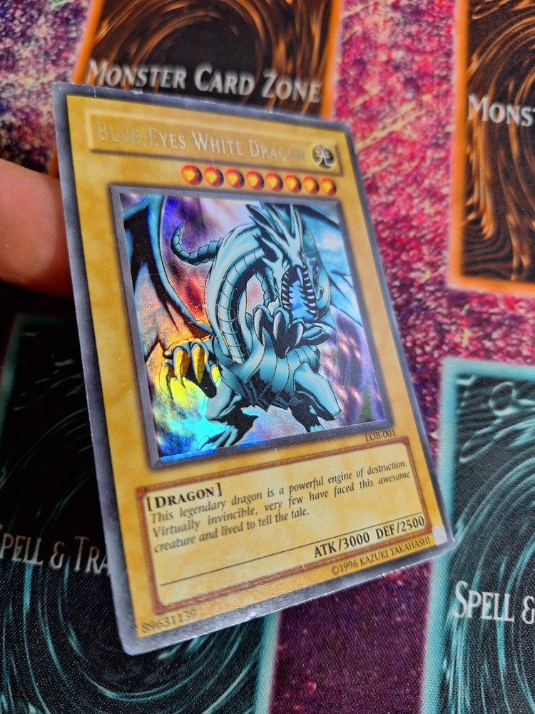 Yu-Gi-Oh! TCG Blue-Eyes White Dragon LOB-001 Ultra Rare OG Unlimited MP Foil Shift. Edge lip, whitening on back, scratching. Card has a small foil shift....