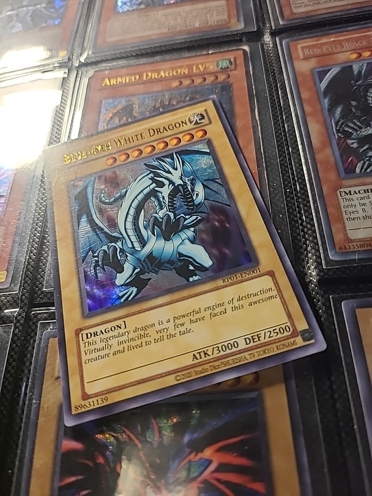 This Yu-Gi-Oh! TCG card is a must-have for any collector or player. The Blue-Eyes White Dragon Retro Pack RP01-EN001 is an Ultra Rare card with a holographic finish. It has a card size of standard and is made of high-quality card stock material. The card features the iconic Blue-Eyes White Dragon creature with 2500 defense and 3000 attack. It is an English language card manufactured by Konami in the United States. This card is perfect for anyone looking to add a rare and powerful card to their collection.