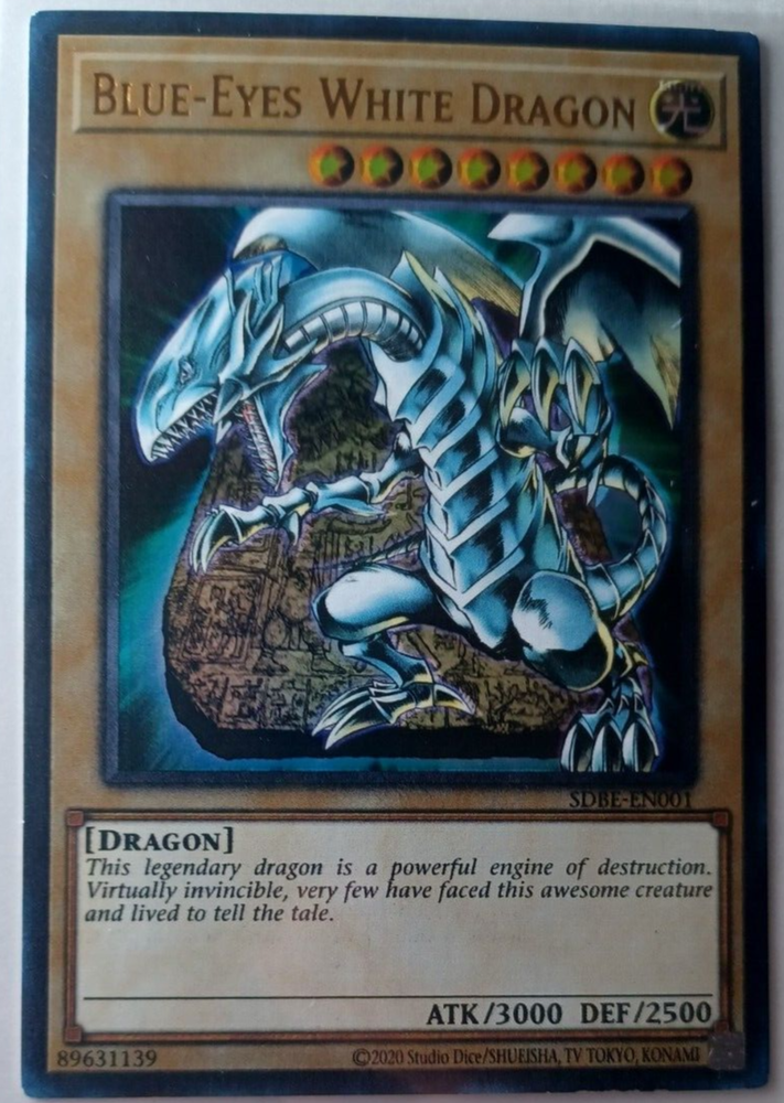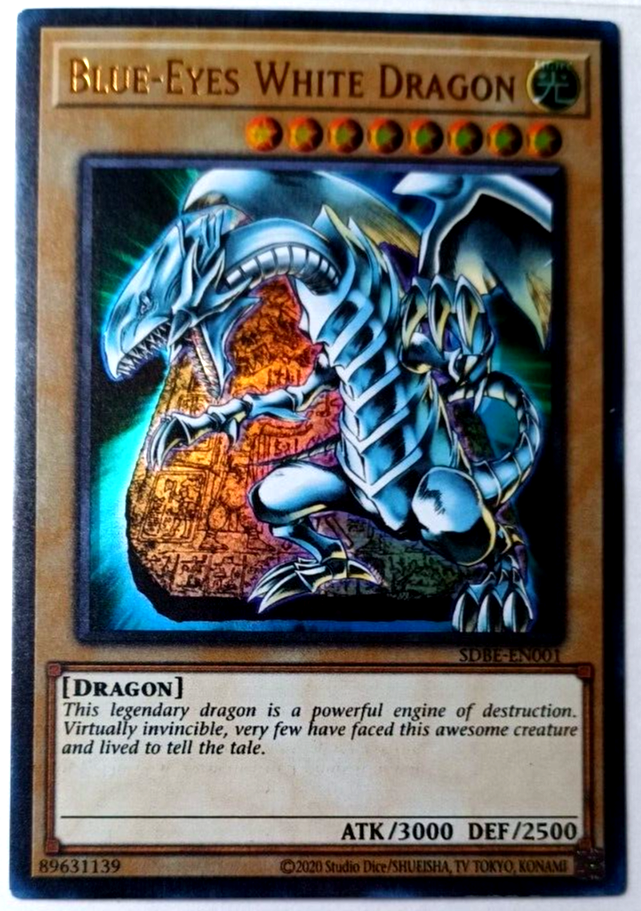 Yu-Gi-Oh! TCG 💎 Blue-Eyes White Dragon 💎 SDBE-EN001 This Yu-Gi-Oh! TCG card is a highly sought-after Blue-Eyes White Dragon from the Structure Deck: Saga of the Blue-Eyes White Dragon set. It features a stunning holo finish and is made from high-quality card stock. The card is in Japanese size and has the card number SDBE-EN001. Fans of the game will appreciate the rarity of this secret rare card, which depicts the powerful dragon creature that is a favorite among players. It is an unlimited edition and has never been autographed or played with, making it a must-have for collectors. This card is suitable for players aged 6 and above and is in English language. Don't miss out on the opportunity to add this amazing card to your collection!