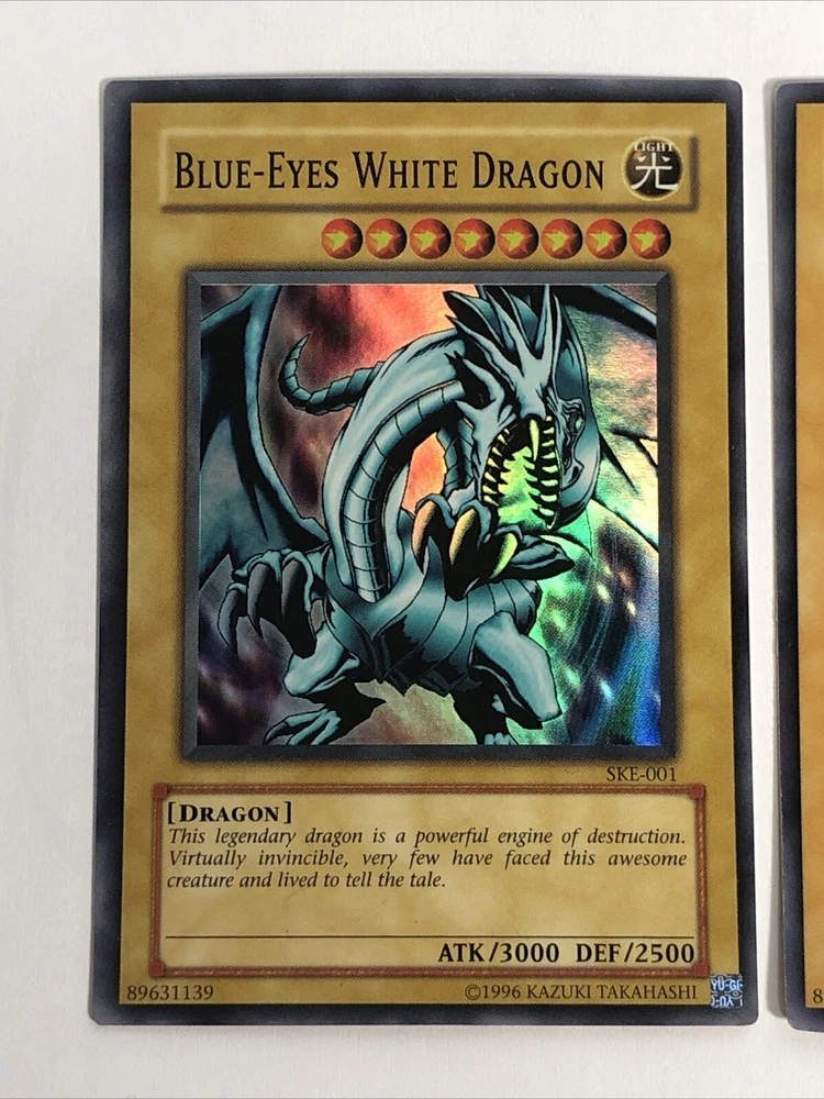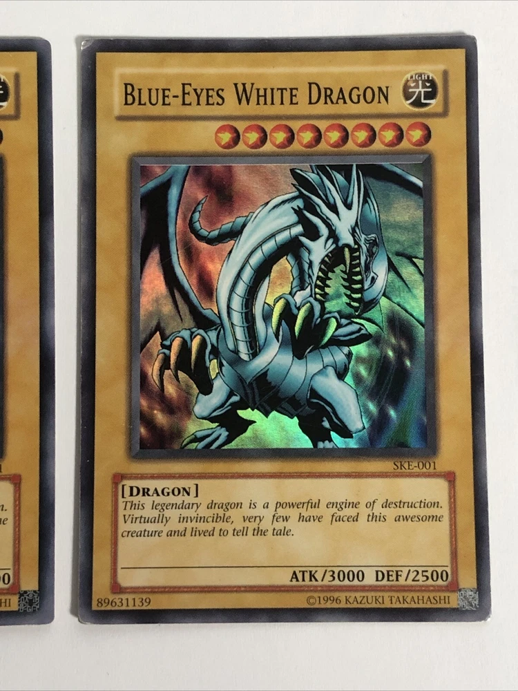 Yu-Gi-Oh! TCG Blue-Eyes White Dragon (Starter Deck SKE-001) Unlimited Lot Of 3 Condition: - 2 cards in light play condition - 1 card in moderate/ heavy play condition Fast shipping See pics for details and condition The Yu-Gi-Oh! TCG Blue-Eyes White Dragon is a powerful Dragon-type creature card from the Starter Deck: Kaiba Evolution set. Each card in this lot of 3 features the iconic monster with 3000 Attack and 2500 Defense points, making it a formidable asset in gameplay. The cards are Secret Rare, 1st Edition, and have a Holo finish, adding to their collectibility and appeal to fans and players of the trading card game.