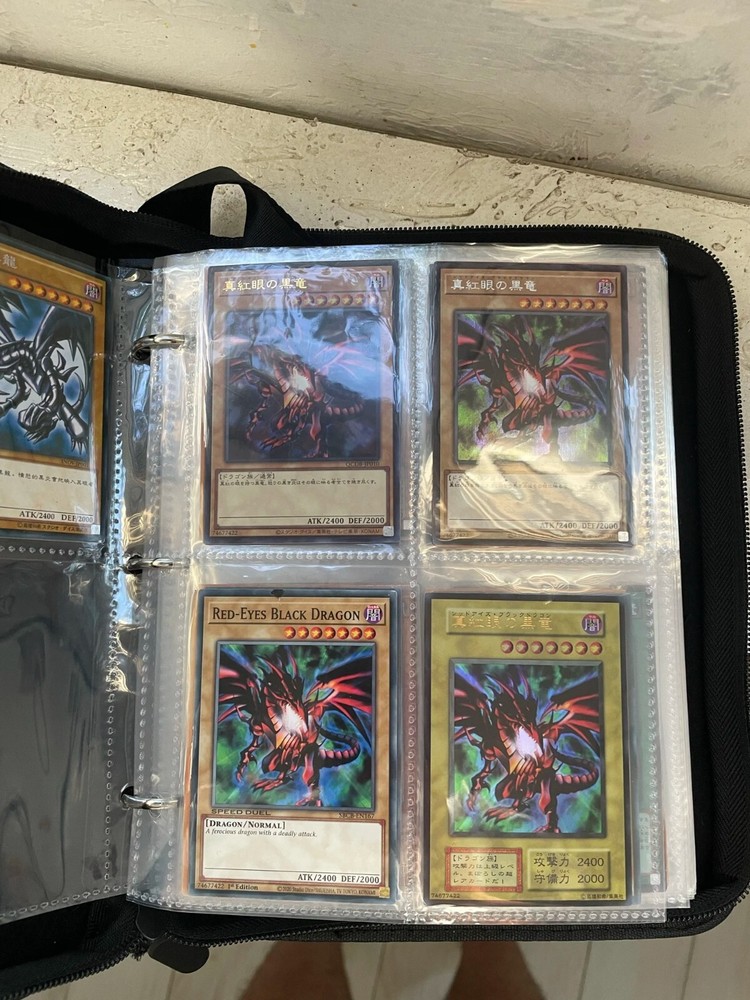 Yu-Gi-Oh! TCG Game Card Binder | Red-Eyes Black Dragon Card Holder Album | 4-Pocket Trading Card Game Collection | Holds Up to 400 Cards Description: Organise and protect your Yu-Gi-Oh! Trading Cards with this premium Red-Eyes Black Dragon 4-Pocket Card Binder ! Whether you're a seasoned duelist or just starting your collection, this card holder is the perfect choice to store and showcase your favourite cards. Key Features: Capacity for Up to 400 Cards: The 4-pocket design allows you to store up to 400 trading cards, making it ideal for Yu-Gi-Oh! TCG, Pokémon, Magic: The Gathering, or other collectible card games. Portable Design with Hand Strap: Comes with a convenient wrist strap, so you can carry your collection with you wherever you go. Perfect for tournaments, trading meetups, or showcasing your deck to friends. Ultimate Card Protection: Keeps cards secure, organised, and protected from fading, staining, bending, tearing, or accidental loss. Built with high-quality materials for durability and long-term use. Card Pocket Size: Each pocket measures 2.7" x 3.6" , perfectly designed to fit standard trading cards snugly and securely. Premium Materials: Made from durable PU (Polyurethane) and EVA (Ethylene Vinyl Acetate) , this binder offers excellent protection and a stylish, long-lasting finish. Comfortable and Stylish: Super soft exterior with a sleek design featuring the iconic Red-Eyes Black Dragon theme. Lightweight and easy to carry, making it the perfect companion for card collectors on the go. Specifications: Binder Type: 4-pocket trading card album. Capacity: Holds up to 400 cards. Pocket Size: 2.7" x 3.6". Material: PU (Polyurethane) and EVA (Ethylene Vinyl Acetate). Colour/Theme: Red-Eyes Black Dragon design. Extras: Wristband for added portability.