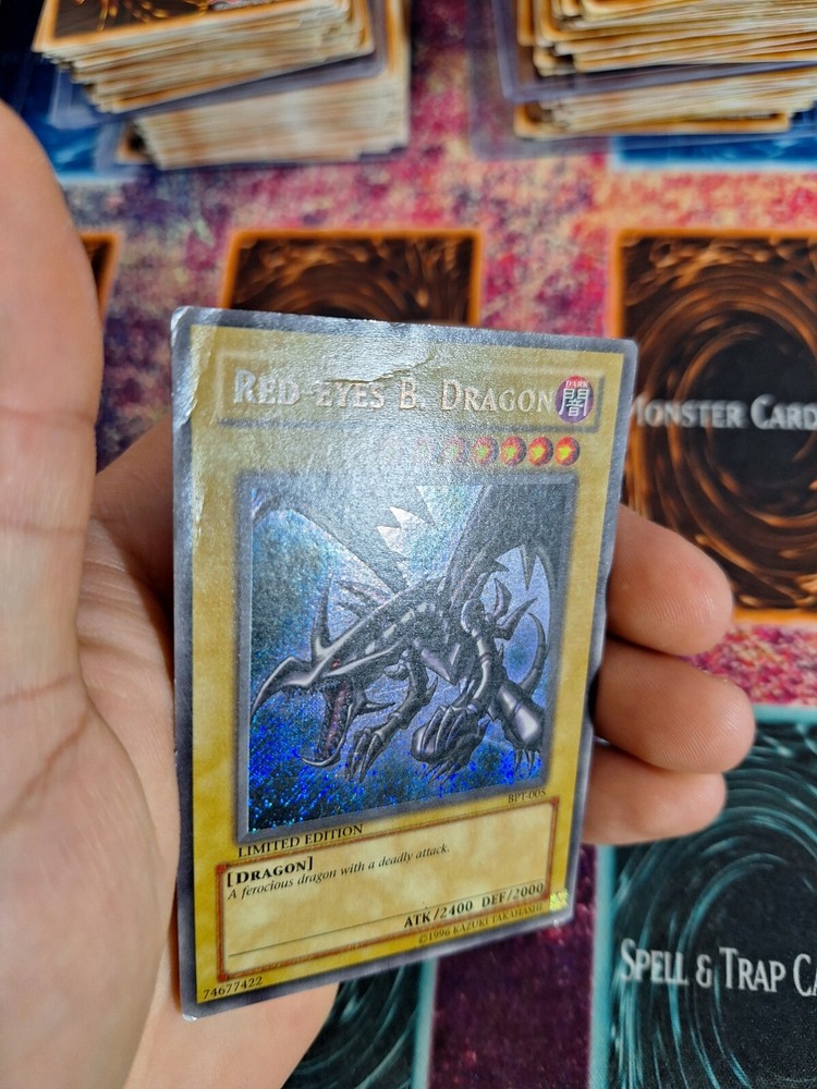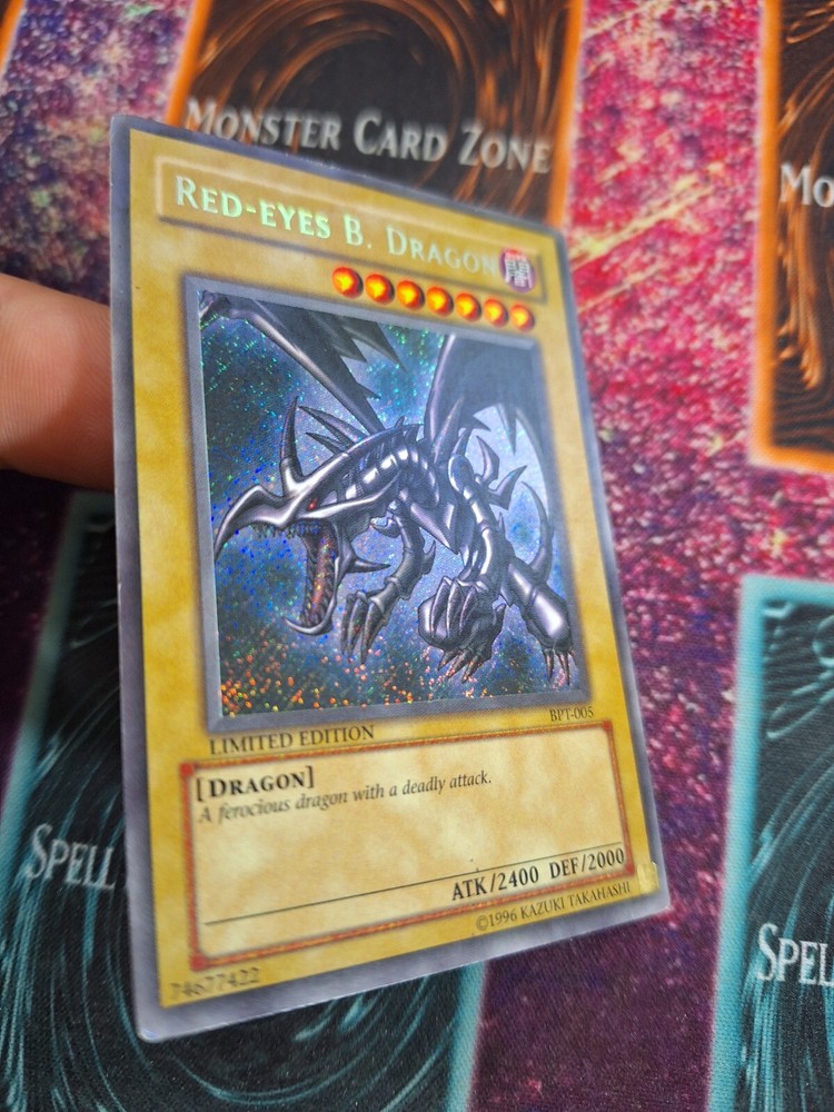 Yu-Gi-Oh! TCG Red-Eyes B. Dragon BPT-005 Secret Rare Limited MP. Crease, corner dings, whitening on back.
