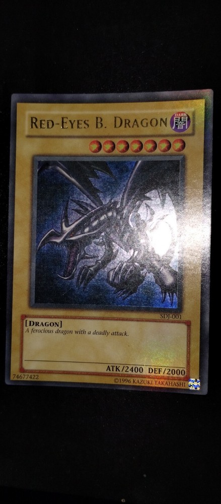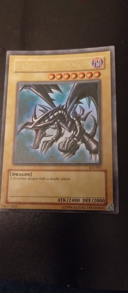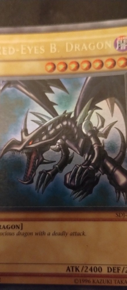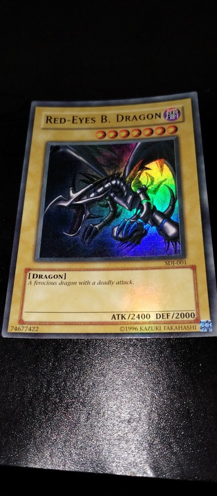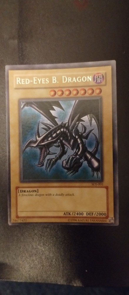 This powerful card from the Yu-Gi-Oh! TCG, Red-Eyes B. Dragon, is a must-have for any serious collector. Featuring dark coloring and the ultra-rare Unlimited version, this Joey Set card is a Normal-type and boasts an impressive 2400 attack power and 2000 defense toughness. In addition to its strength and rarity, Red-Eyes B. Dragon is in excellent condition, having been lightly played. With its card number, Sdj-001, and the Creature/Monster Type of Dragon, this card is a valuable addition to any player's deck. Don't miss your chance to add this amazing card to your collection!